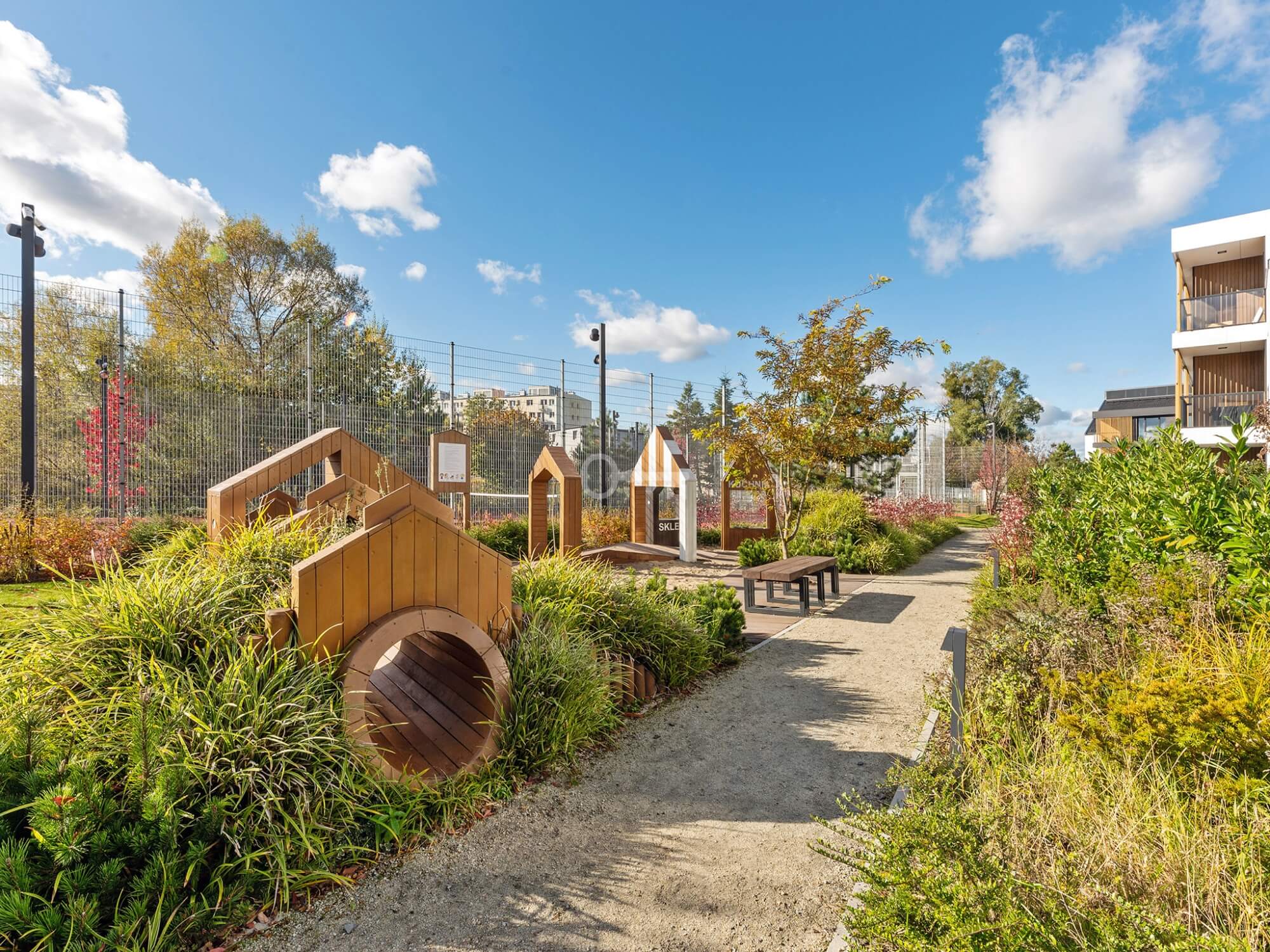 Osiedle oferuje wyjątkową przestrzeń wspólną dla mieszkańców, obejmującą: