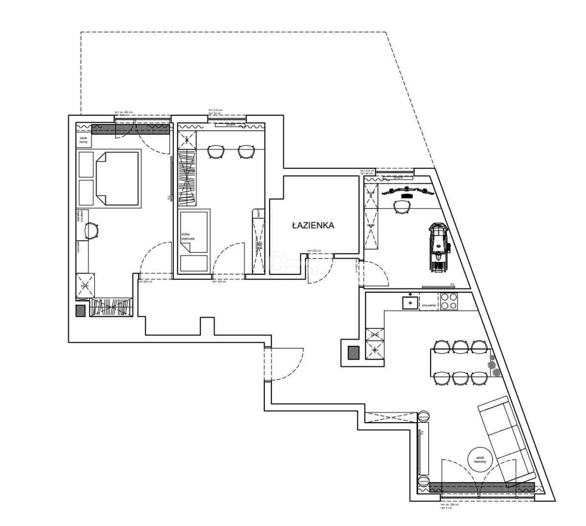 Apartament charakteryzuje się bardzo funkcjonalnym i komfortowym układem: