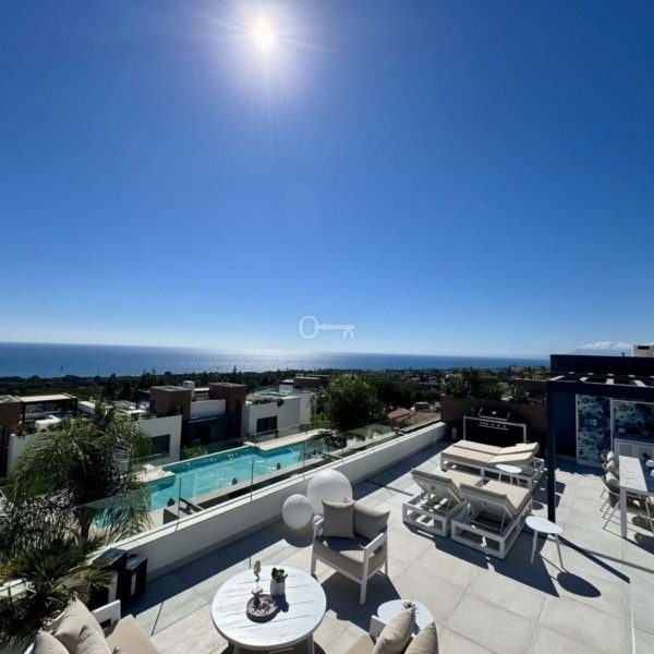 Ten luksusowy apartament na dachu łączy w sobie współczesną architekturę, fenomenalne widoki i całkowitą prywatność. Orientacja południowa zapewnia maksymalne naturalne światło i słońce przez cały dzień, a prawie każdy pokój oferuje panoramiczne widoki na Morze Śródziemne i okoliczne góry. Ogrzewanie podłogowe w całym budynku.
