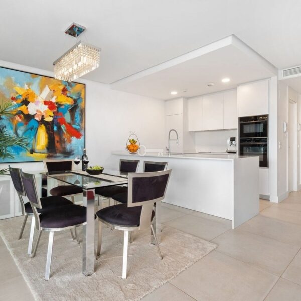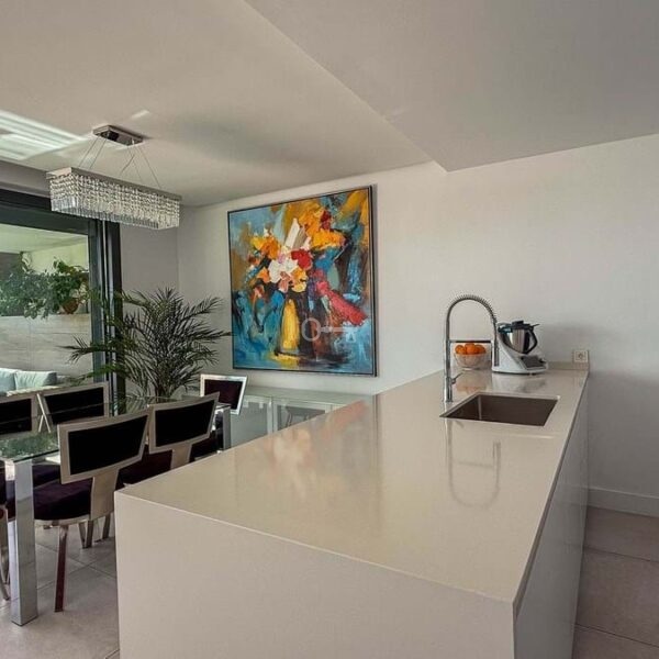 Położony w samym sercu pola golfowego Cabopino, ten nowoczesny apartament składa się z dużego salonu z jadalnią, w pełni wyposażonej kuchni, 3 sypialni dwuosobowych i 2 łazienek. Jest również umeblowany zgodnie z najwyższymi standardami i posiada najnowocześniejsze systemy bezpieczeństwa i alarmowe. Dodatkową i wspaniałą cechą tego apartamentu jest duży prywatny ogród z trawnikiem i prywatny basen. W cenę wliczone są również 2 podziemne miejsca parkingowe i komórka lokatorska.