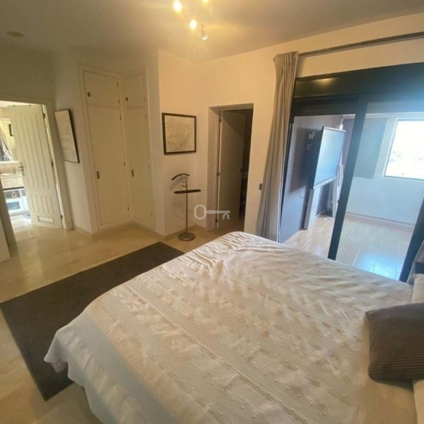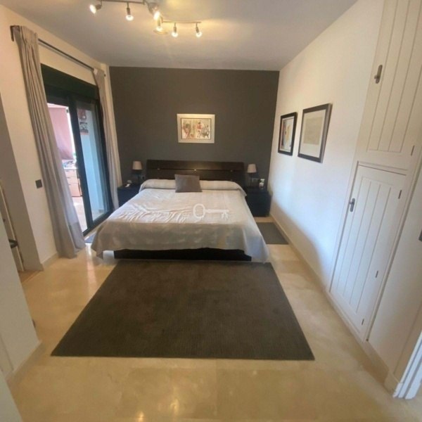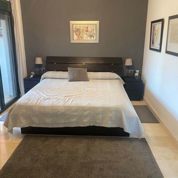 Jeden poziom wyżej znajdują się kolejne 2 dwuosobowe sypialnie, obie z prywatnymi łazienkami i balkonami. Główna sypialnia ma garderobę i dodatkowy pokój, który właściciel uczynił swoim biurem (kiedyś był otwarty taras, właściciel zamknął go, aby zrobić biuro, ale można go ponownie otworzyć).