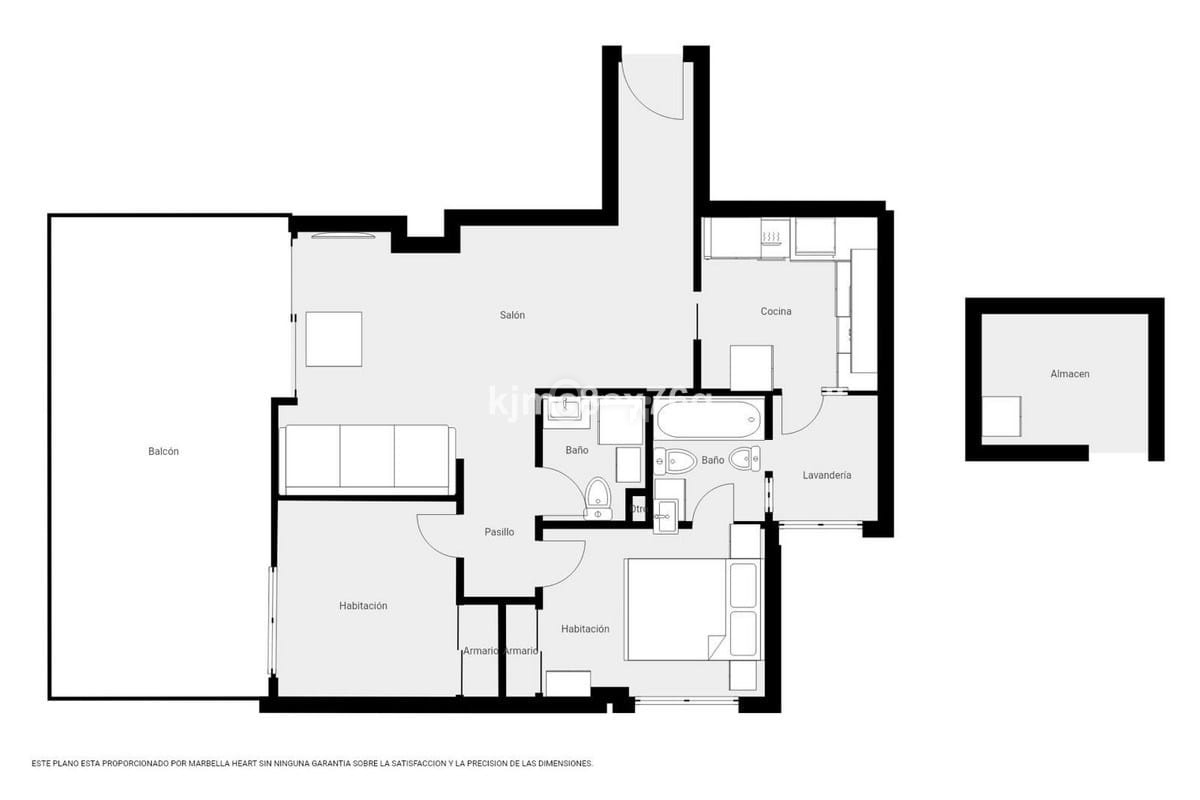 Bardzo przytulna nieruchomość składa się z przedpokoju, salonu / jadalni z kominkiem i dostępem do zadaszonego tarasu, w pełni wyposażonej kuchni z pomieszczeniem gospodarczym, głównej sypialni z łazienką i wbudowanymi szafami, a także drugiej sypialni i łazienki dla gości. Część tarasu została zamknięta i może służyć jako trzecia sypialnia. W cenę wliczone jest miejsce garażowe i komórka lokatorska.