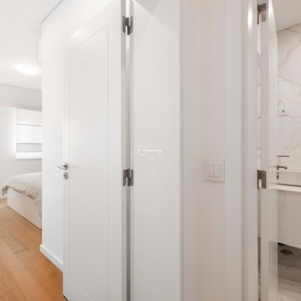 „Ten wyrafinowany apartament, położony przy Rua Luís Derouet 27, w samym sercu Lizbony, jest idealnym wyborem dla tych, którzy zamierzają mieszkać w jednej z najbardziej charakterystycznych i pożądanych dzielnic miasta. Nieruchomość o prywatnej powierzchni brutto 118 m2 została w pełni przebudowana w 2021 roku, oferując idealne połączenie nowoczesności i komfortu.