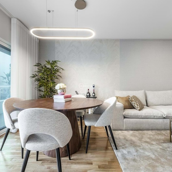 Salon: Przestronny i jasny, z bezpośrednim dostępem do tarasu i kuchni przez przesuwane drzwi