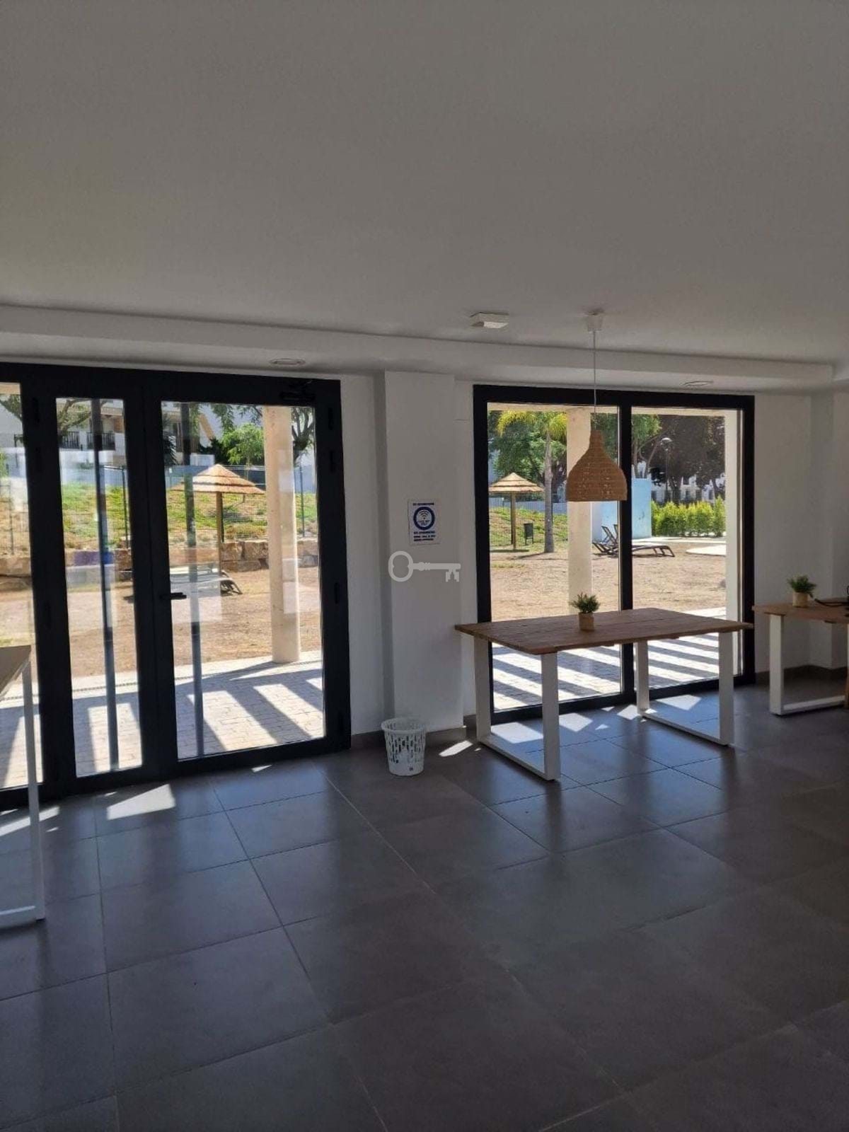 Nowoczesne wnętrza: W pełni wyposażona kuchnia w stylu amerykańskim otwierająca się na jasny salon z jadalnią; wysokiej jakości wykończenia, w tym gresowe podłogi ceramiczne, system aerotermalny i scentralizowana klimatyzacja z funkcjami ciepłej/zimnej wody dla całorocznego komfortu.