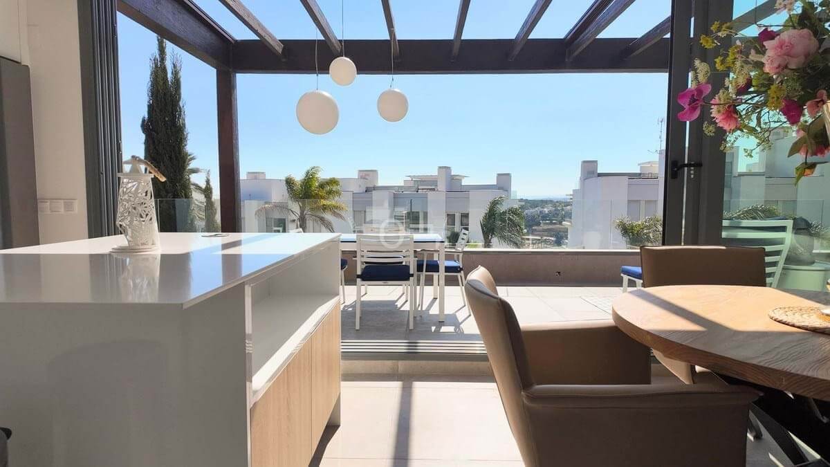The apartment features two spacious bedrooms and two bathrooms, including a master bedroom with en-suite. The bright living area opens onto a generous west-facing terrace, where you can enjoy the afternoon sun along with lovely open views and even partial sea views, creating a perfect outdoor living space.