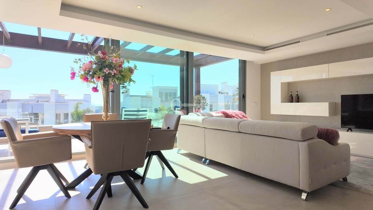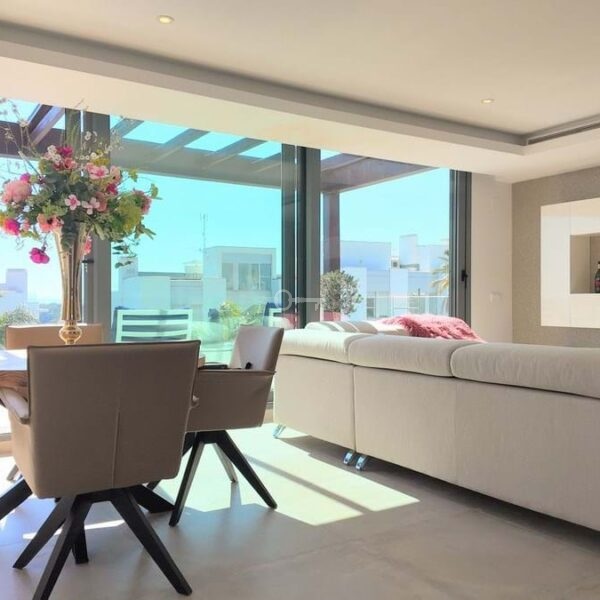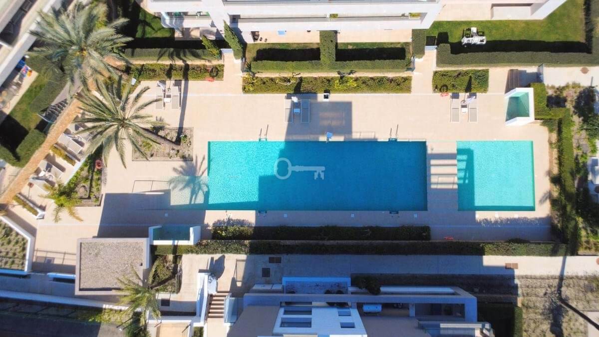 The urbanisation offers beautifully maintained communal areas, including stunning swimming pools, landscaped gardens, and a unique rooftop chill-out area with a plunge pool, ideal for relaxing and enjoying the Mediterranean lifestyle.