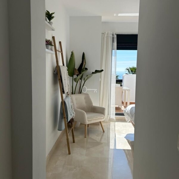 The apartment features a semi-open plan kitchen with integrated Bosch appliances, seamlessly combining style and functionality. The location offers ultimate convenience, just a short stroll from Casares beach, local chiringuitos, restaurants, mini-markets, and the clubhouse, while La Duquesa Marina is only 5 minutes away, and Estepona 1012 minutes by car.