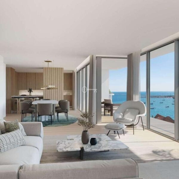 Framed by the green façades of the surrounding blocks, it enjoys East and West views, overlooking the sea and the town, both in the living room and in the incredible master suite.