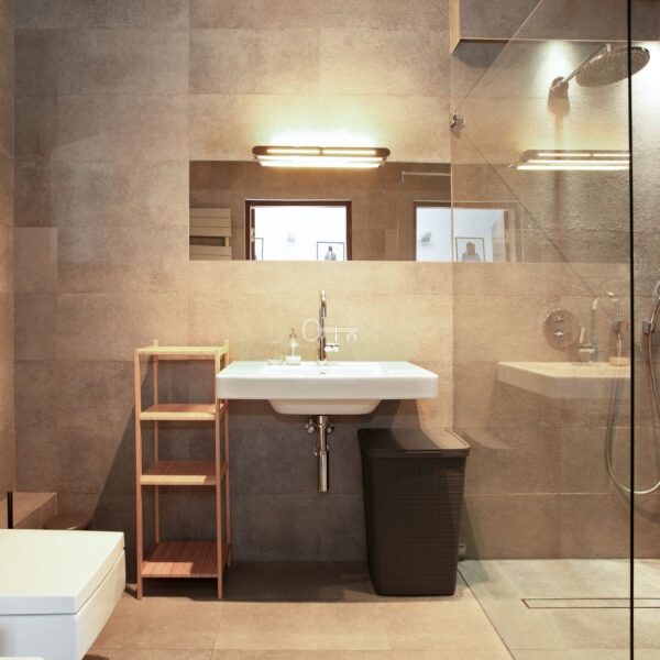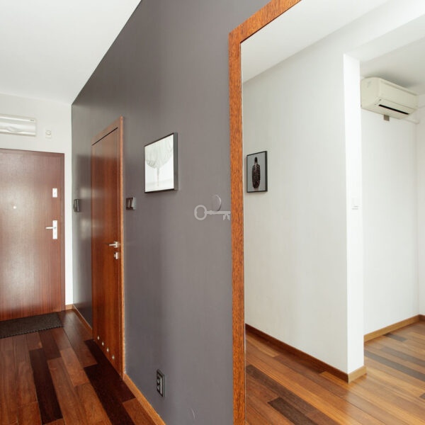 Wnętrze zostało zaprojektowane z myślą o osobach ceniących przestrzeń, światło i najwyższą jakość wykończenia. Apartament wyposażono w stolarkę okienną z naturalnego drewna oraz system klimatyzacji renomowanej marki Daikin. Serce domu stanowi nowoczesna kuchnia, w której znajdziemy pełne zaplecze technologiczne marki Siemens (w tym piekarnik z funkcją pary).