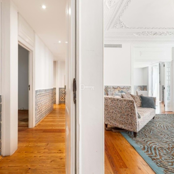 Ten apartament jest prawdziwym dziełem sztuki, z 273m² powierzchni mieszkalnej, położony w uprzywilejowanej okolicy w pobliżu Chiado. Zaledwie kilka kroków dzieli go od muzeów, teatrów, pięknych kościołów, sklepów i doskonałych restauracji. Nieruchomość wyróżnia się zachowaniem wielu oryginalnych elementów, takich jak wspaniałe XVIII-wieczne płytki, masywne i datowane kamienne elementy i detale, rzeźbione sufity, drewniane podłogi, okiennice w oknach i majestatyczny kominek ustawiony w salonie o powierzchni 40 m². Ponadto, elegancja użytych materiałów jest niezwykła, a po wejściu do środka ma się wrażenie wyrafinowania. Dla tych, którzy cenią klasyczne elementy, gdzie imponujące pokoje mogą zapewnić różnorodne środowisko życia i wypoczynku, jest to niewątpliwie idealne miejsce do przyjmowania rodziny i przyjaciół.