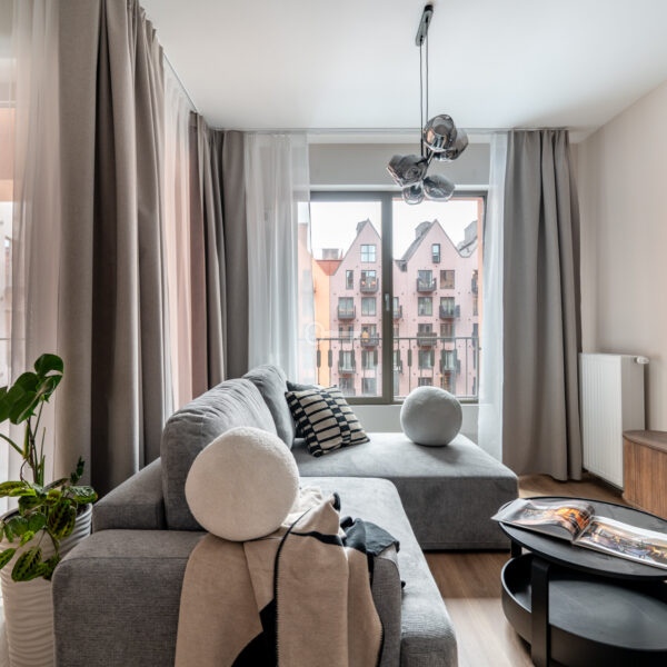 Lokal oferuje widok na nawiązujący do XV wiecznych spichlerzy Wyspy Spichrzów. Przestrzeń lokalu została zaaranżowana jako niezależny apartament inwestycyjny, wakacyjny lub second home. Każdy z lokali został kompletnie wykończony oraz gotowy do zapraszania gości. Nieruchomość została zaprojektowana z dbałością o jakość i detal, z niezwykłym wyczuciem, smakiem, dla komfortu potencjalnych gości.