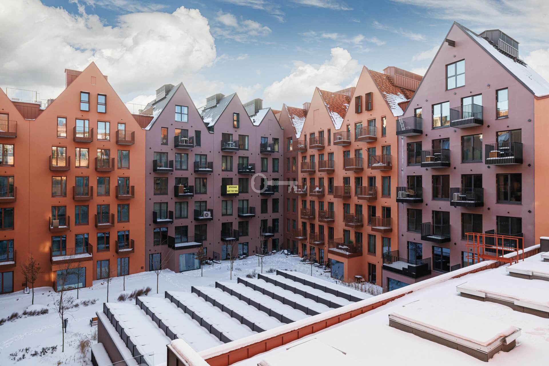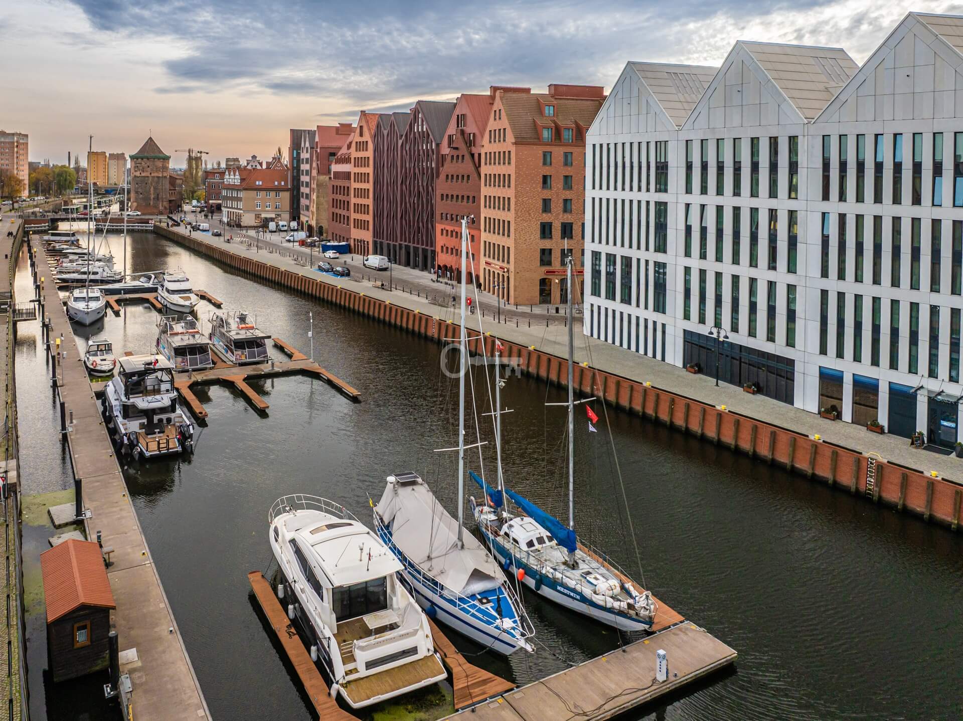 Projekt harmonijnie łączy nowoczesną architekturę z historycznym charakterem tego miejsca, oferując wyjątkowe przestrzenie mieszkalne i usługowe w jednej z najbardziej atrakcyjnych lokalizacji miasta. Duże okna w większości lokali zapewniają widoki na Stare Miasto i odrestaurowane zabytkowe spichlerze.