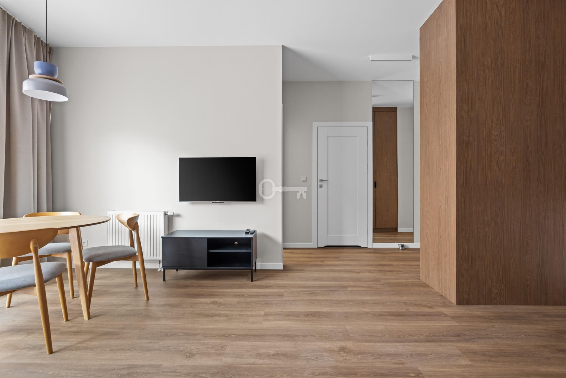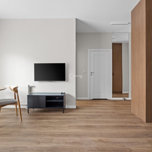Lokal jest kompletnie wykończony oraz gotowy do zapraszania gości. Nieruchomość została zaprojektowana z dbałością o każdy detal, z niezwykłym wyczuciem, smakiem, dla komfortu potencjalnych gości. W pełni wyposażona nieruchomość pod kątem mebli ruchomych, szaf zabudowy kuchennej, sprzętu RTV oraz AGD. W każdym z lokali stolarka została wykonana przez stolarza pod wymiar.