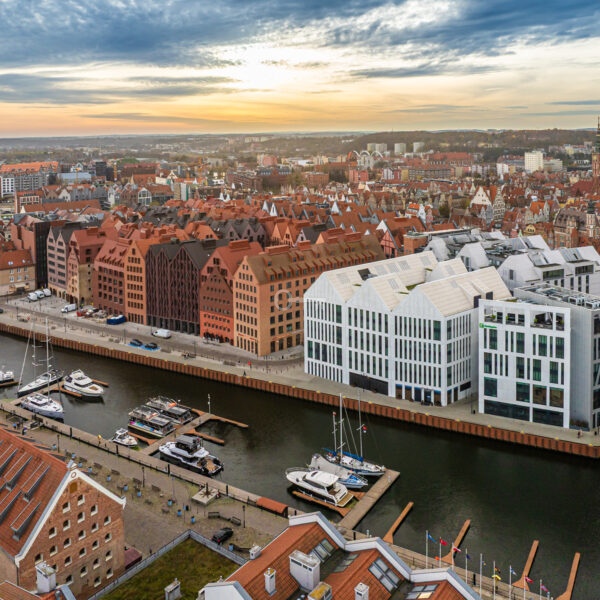 Projekt harmonijnie łączy nowoczesną architekturę z historycznym charakterem tego miejsca, oferując wyjątkowe przestrzenie mieszkalne i usługowe w jednej z najbardziej atrakcyjnych lokalizacji miasta. Duże okna w większości lokali zapewniają widoki na Stare Miasto i odrestaurowane zabytkowe spichlerze.