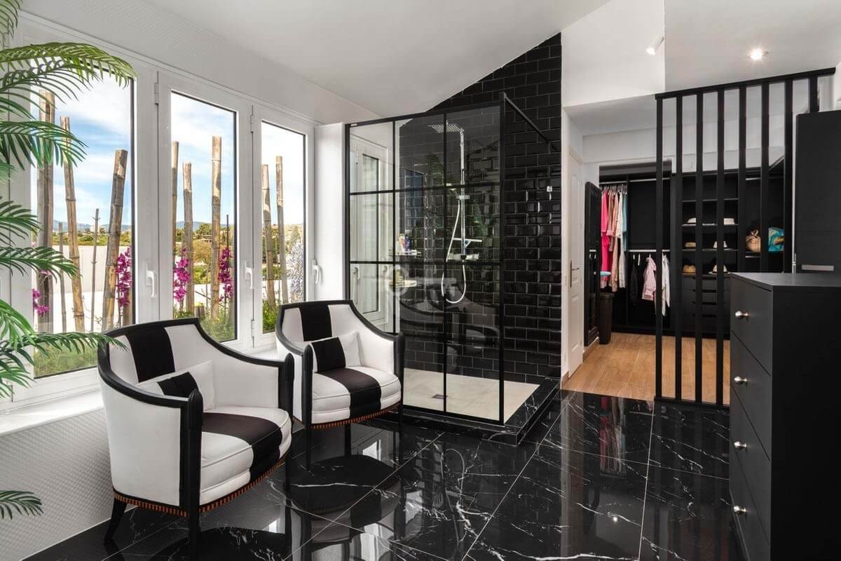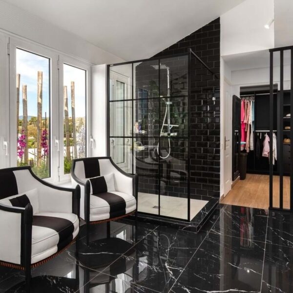 Several terraces extend the living space outdoors, providing different areas for dining, lounging, and enjoying the Mediterranean climate throughout the day.
