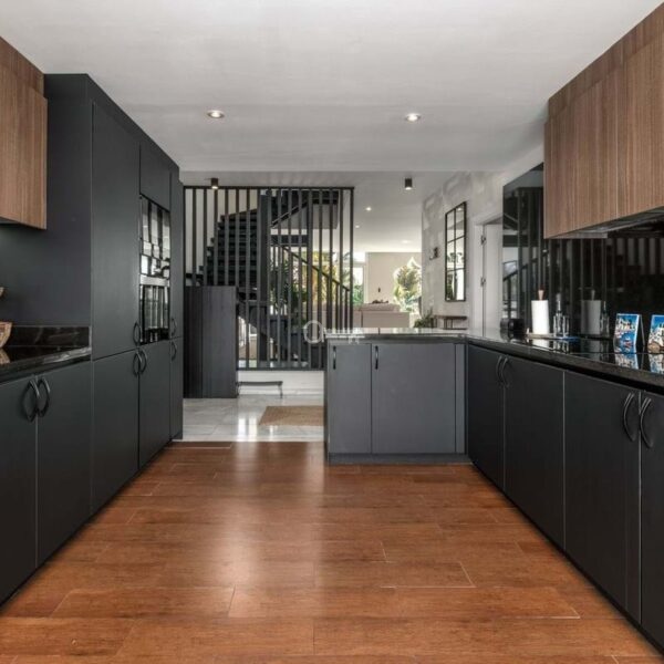 The property offers four bedrooms and three bathrooms distributed over two levels, creating a practical layout for both family use and entertaining. The interiors are modern and well maintained, with a fully equipped kitchen designed for everyday living.