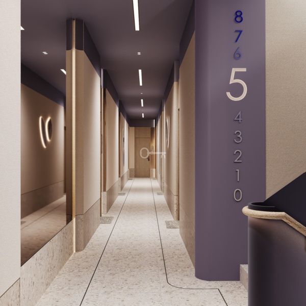 Budynek inwestycji ESY to nowoczesna, 8-kondygnacyjna konstrukcja z 2-poziomowym parkingiem podziemnym i lokalami usługowymi na parterze. W częściach wspólnych zastosowano eleganckie materiały, takie jak gres, kamień naturalny i dekoracyjne elementy drewnopodobne, a windy premium oraz zielony dziedziniec z miejscem rekreacji podnoszą komfort życia mieszkańców.