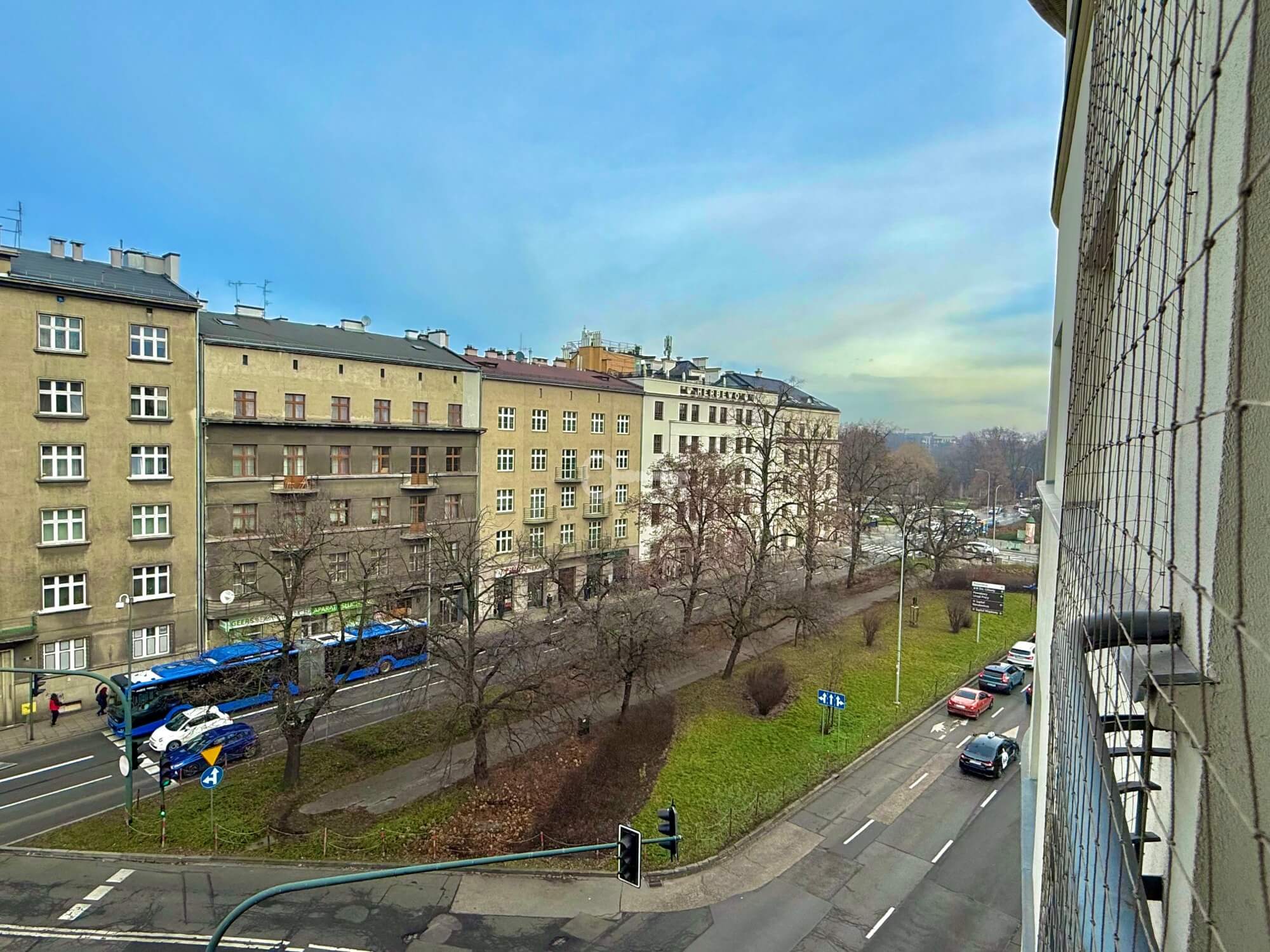 * sypialnia z wyjściem na balkon i widokiem na Aleje