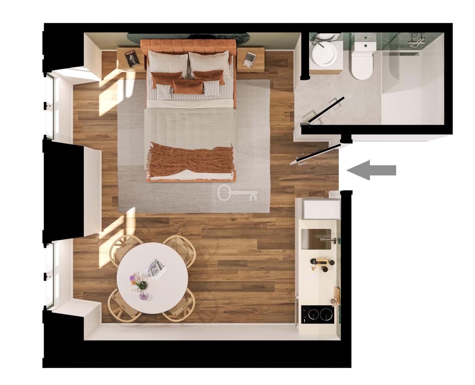 Rozmieszczony na czterech piętrach budynek obejmuje również funkcjonalną recepcję i dobrze wyposażoną pralnię. Po wejściu do budynku, zostaniesz powitany w ciepłym i zachęcającym otoczeniu, łączącym komfort domu z usługami i udogodnieniami najwyższej klasy hotelu. Dzięki autorskiemu modelowi zarządzania, przez pierwsze 5 lat właścicielom lokali w projekcie gwarantowana jest roczna stopa zwrotu brutto w wysokości 4%.