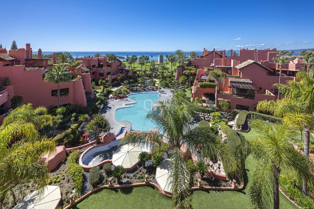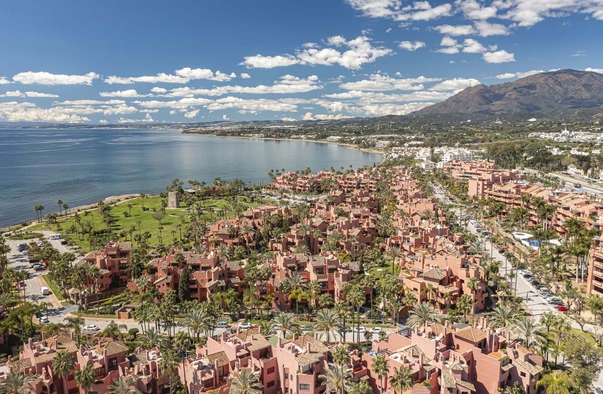 Ten luksusowy dwupoziomowy penthouse w Torre Bermeja, Estepona East, położony na tle Morza Śródziemnego, stanowi kwintesencję wyrafinowanego nadmorskiego życia. Nieruchomość o powierzchni 395 m² obejmuje trzy przestronne sypialnie, z których każda ma własną łazienkę, oferując mieszkańcom niezrównaną wygodę i prywatność. Położenie nieruchomości w pierwszej linii plaży zapewnia bezpośredni dostęp do morza i wspaniałe widoki, zanurzając się w spokojnych dźwiękach fal.