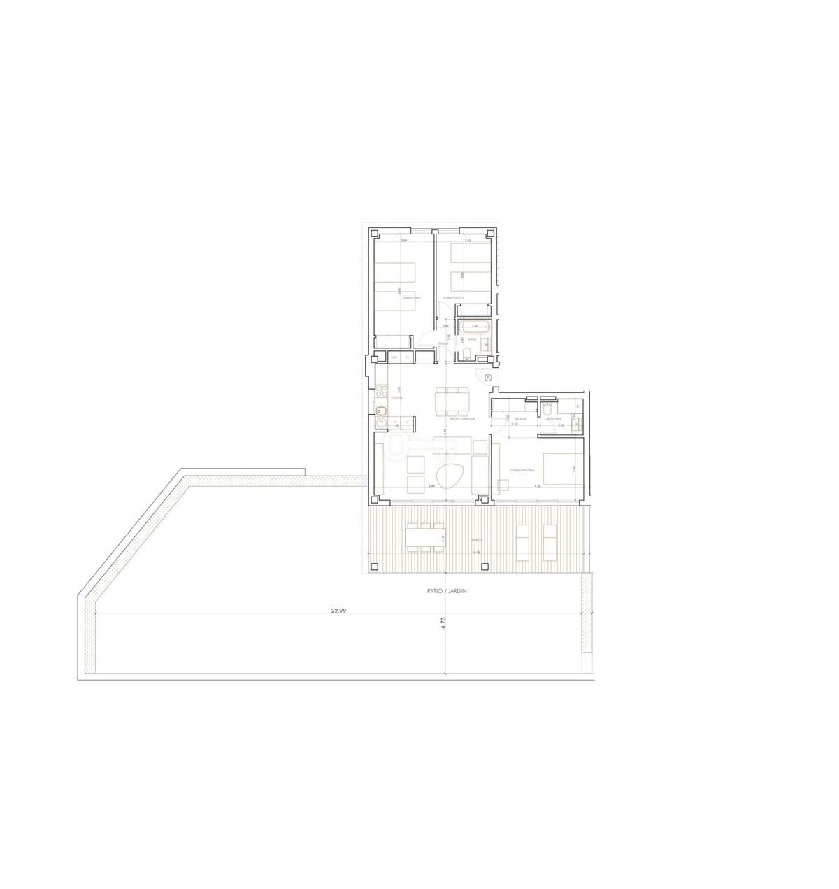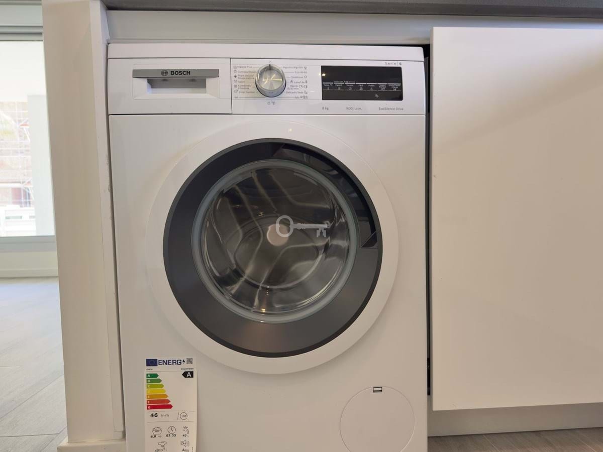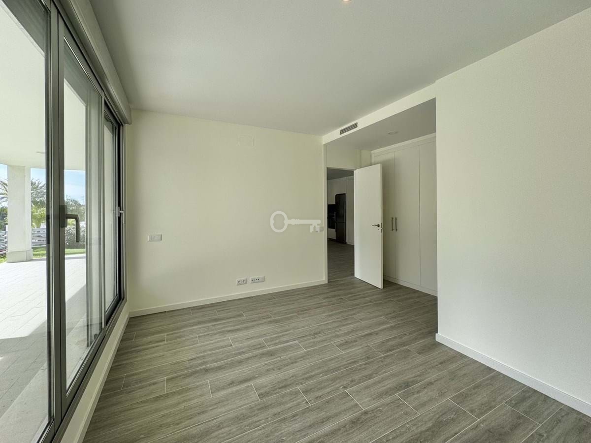 Apartament oferuje przestronną część dzienno-jadalną z dostępem do zadaszonego tarasu i ogrodu, kuchnię na otwartym planie w pełni wyposażoną w urządzenia Bosch, trzy sypialnie z wbudowanymi szafami i dwie łazienki wykończone zgodnie z wysokimi standardami. Główna sypialnia wychodzi bezpośrednio na ogród, a pozostałe dwie sypialnie oferują widok na tereny zielone.