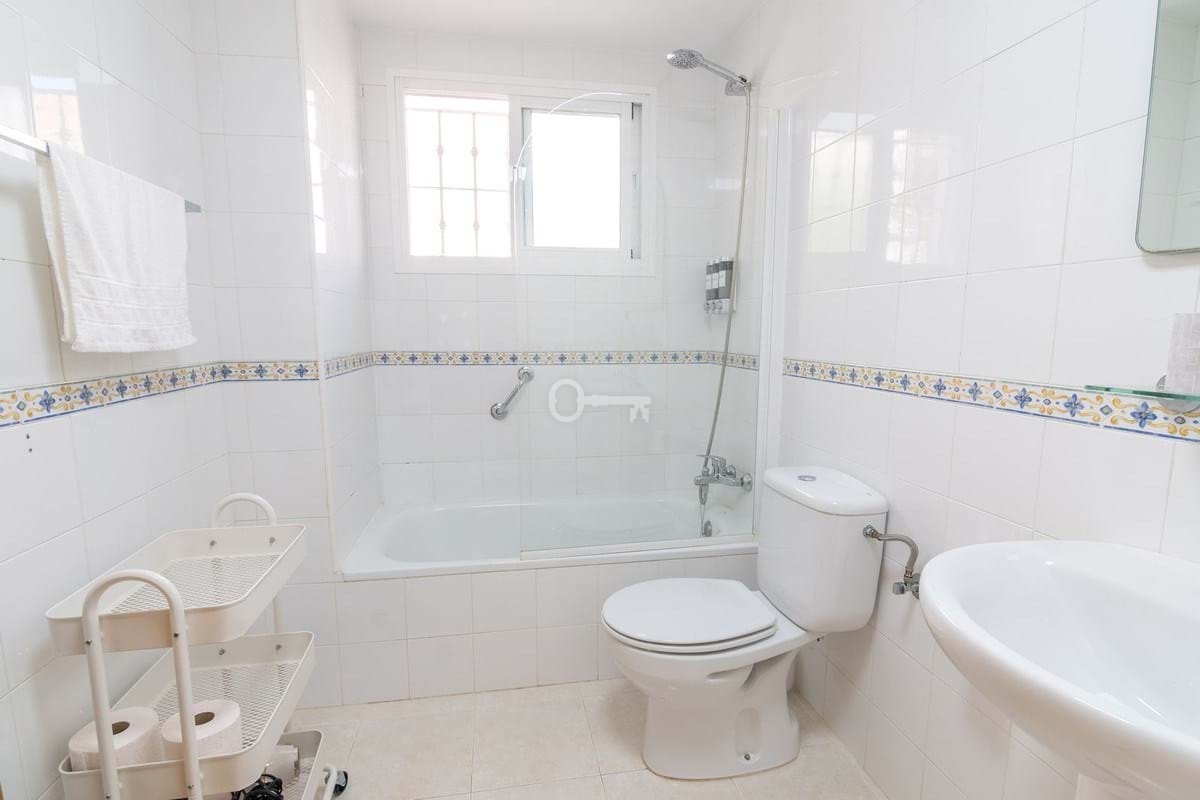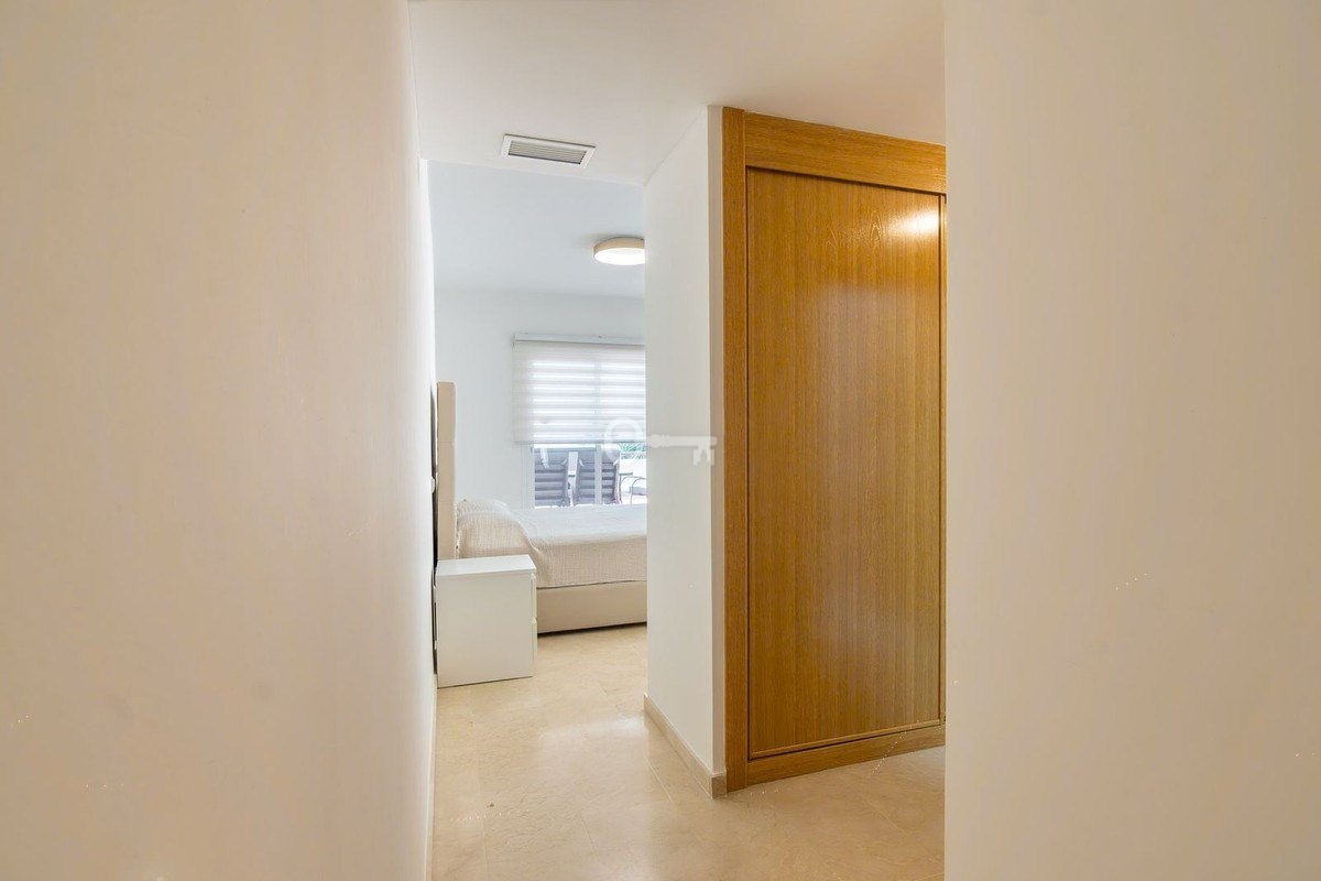Apartament jest przestronny i dobrze rozplanowany. Z holu wejściowego wchodzi się do jasnego salonu i jadalni na otwartym planie, które prowadzą bezpośrednio na duży taras od strony południowo-wschodniej. Ta zewnętrzna przestrzeń, częściowo zadaszona, a częściowo otwarta, jest idealna do cieszenia się słońcem przez cały dzień z przyjemnym widokiem na ogród, basen i tereny zielone wspólnoty. Kuchnia jest niezależna, dobrej wielkości i posiada praktyczny aneks gospodarczy.