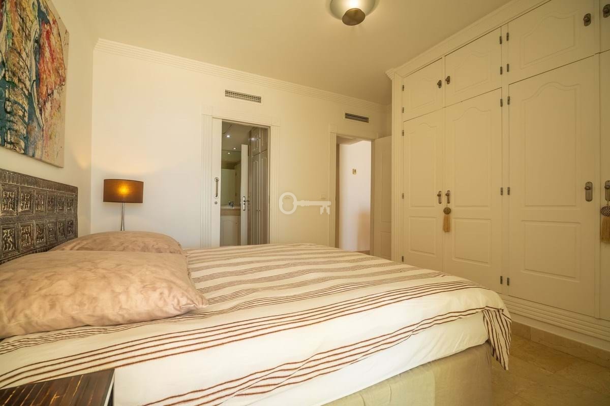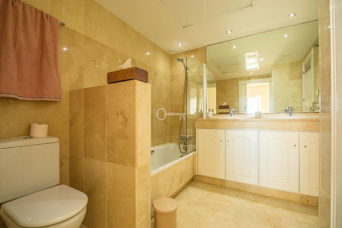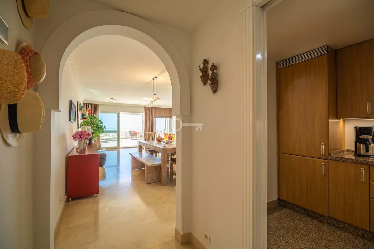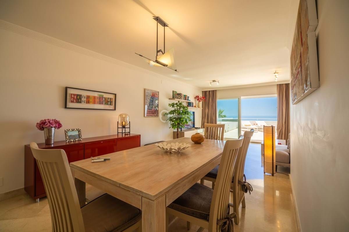 MAGNIFICENT BEACHFRONT APARTMENT WITH STUNNING VIEWS OF THE SEA, BEACH, MOUNTAINS AND THE AFRICAN COAST, FEURING A SPACIOUS 77m² TERRACE. Ta nieruchomość znajduje się w dzielnicy Estepona, między miastem Estepona a uroczym Puerto de la Duquesa, zaledwie 5 minut jazdy od wszelkiego rodzaju udogodnień i kilku pól golfowych o różnym poziomie, w tym wielokrotnie nagradzanego Finca Cortesín, konsekwentnie uznawanego za najlepszy ośrodek golfowy w Hiszpanii i gospodarza prestiżowych turniejów, takich jak Solheim Cup 2023 i Volvo Masters. Dogodnie usytuowany na tym samym poziomie co parking, z bezpośrednim dostępem do rezydencji, apartament cieszy się również podwyższoną pozycją (4 piętro) nad poziomem morza z tarasu. Wychodzący na południowy wschód, oferuje panoramiczne widoki na morze na pięknie zagospodarowane ogrody rozciągające się aż do Afryki, idealne miejsce do podziwiania spektakularnych wschodów słońca. Osiedle jest bardzo dobrze utrzymane, z przestronnymi terenami zielonymi i dużym basenem. Miejsce parkingowe w garażu i komórka lokatorska są wliczone w cenę. Gorąco polecamy oglądanie JUST LISTED!