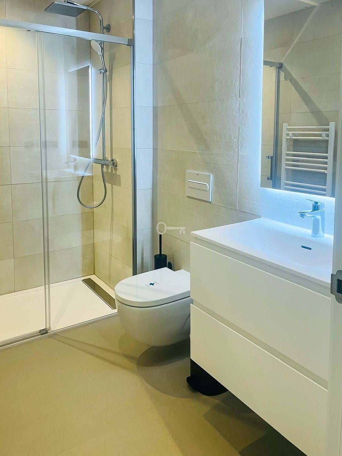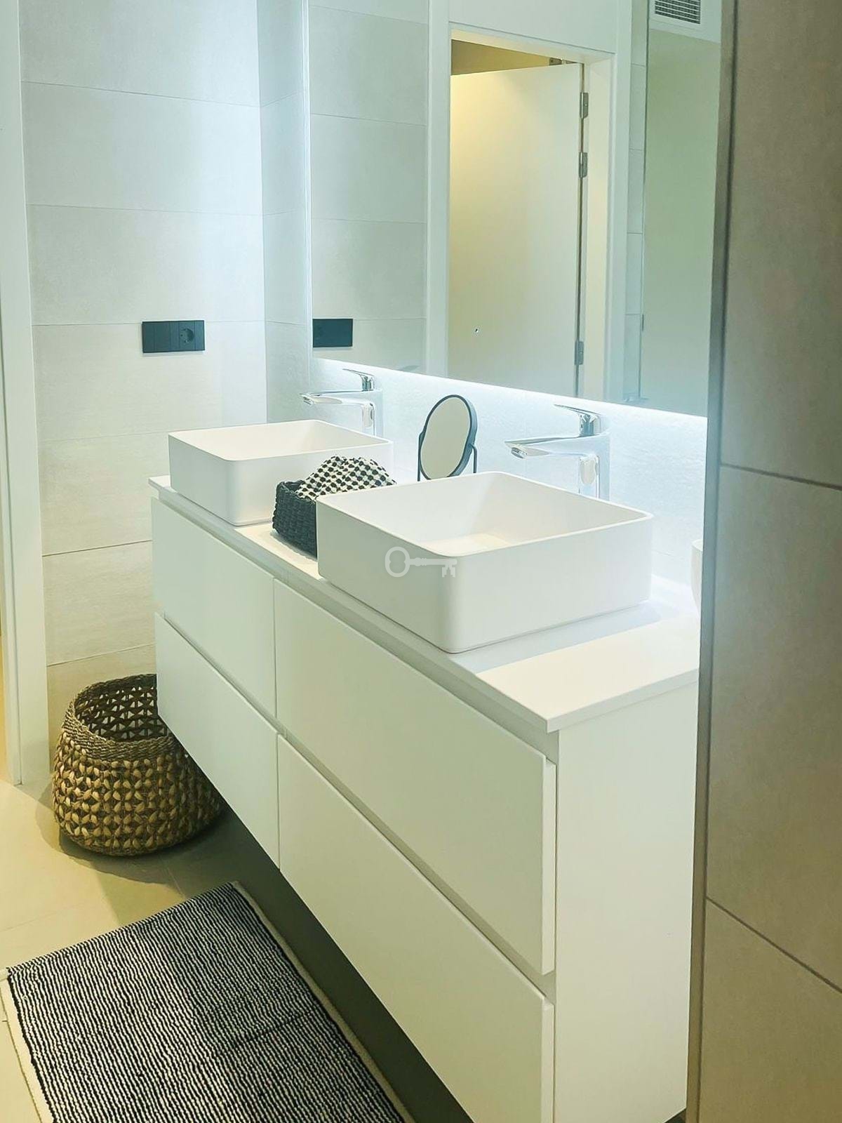 Zainstalowano również system automatyki domowej do sterowania oświetleniem i roletami elektrycznymi. Klimatyzacja i ogrzewanie podłogowe są dostarczane za pomocą energii aerotermalnej. Warto również wiedzieć, że bardzo przestronne pomieszczenie gospodarcze z pralką i suszarką bębnową znajduje się naprzeciwko drzwi wejściowych. Prywatne podziemne miejsce parkingowe jest również wliczone w cenę. Ekskluzywne ogrodzone osiedle oferuje duży odkryty basen i najnowocześniejszą siłownię, strefę społeczną, pokój gier i bezpieczne wejście.