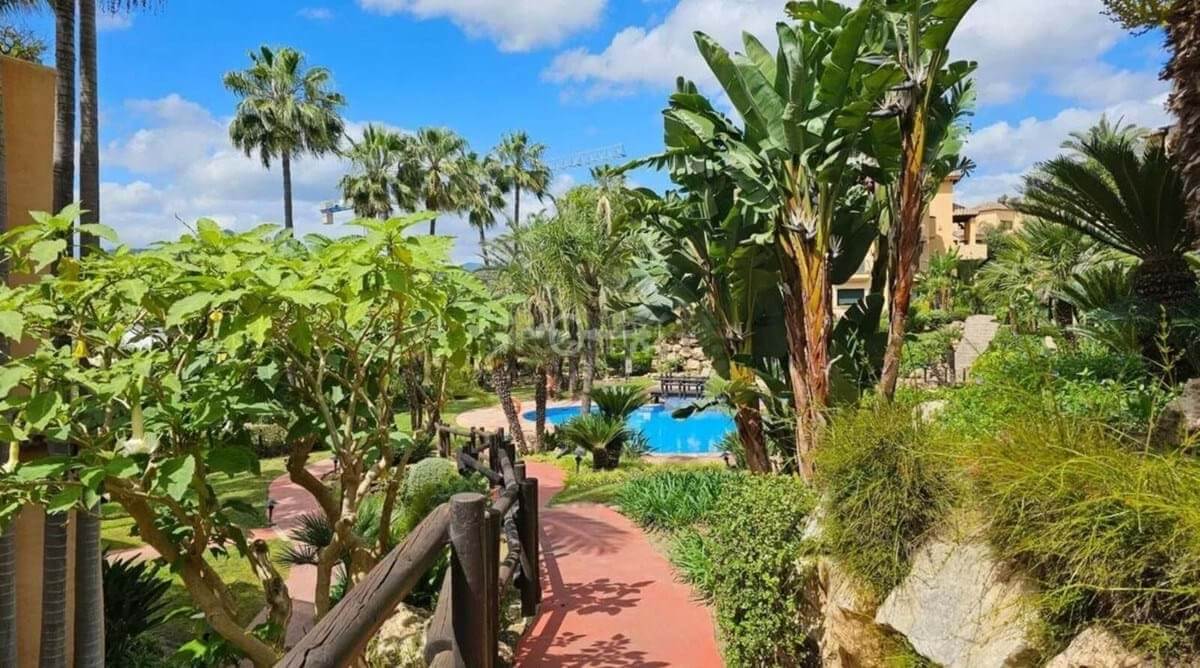 W głównej sypialni znajduje się przytulna garderoba, a zarówno z sypialni, jak i salonu można wyjść na przestronny taras z niezrównanym widokiem na wspaniałe ogrody i basen. Nieruchomość obejmuje również prywatne zewnętrzne miejsce parkingowe na terenie wspólnoty.