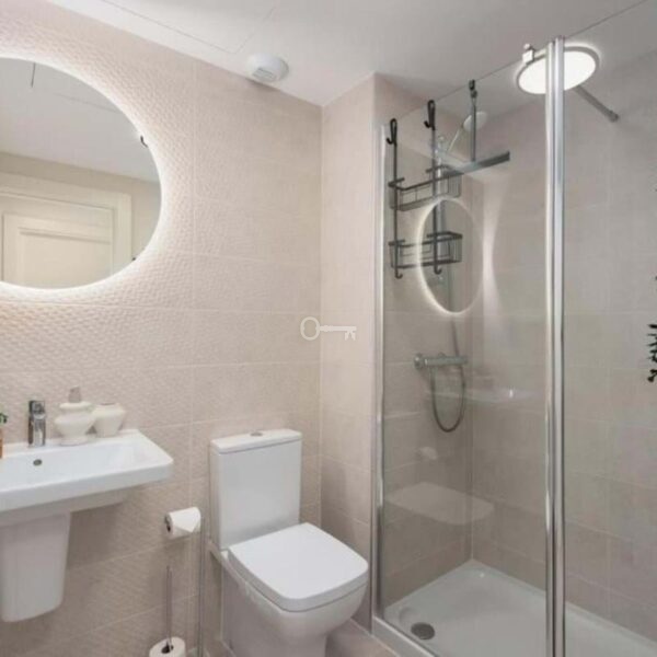 The apartment is finished to a high standard and fully equipped with all modern comforts. It features a brand-new, fully fitted kitchen that flows seamlessly into a bright and inviting living and dining area. Additionally, there are two comfortable bedrooms and two elegant bathrooms.