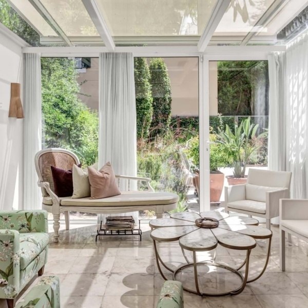 – Salon z kominkiem i ogrodem zimowym o powierzchni 72,22 mkw, oba z bezpośrednim dostępem do doskonałego i przytulnego tarasu