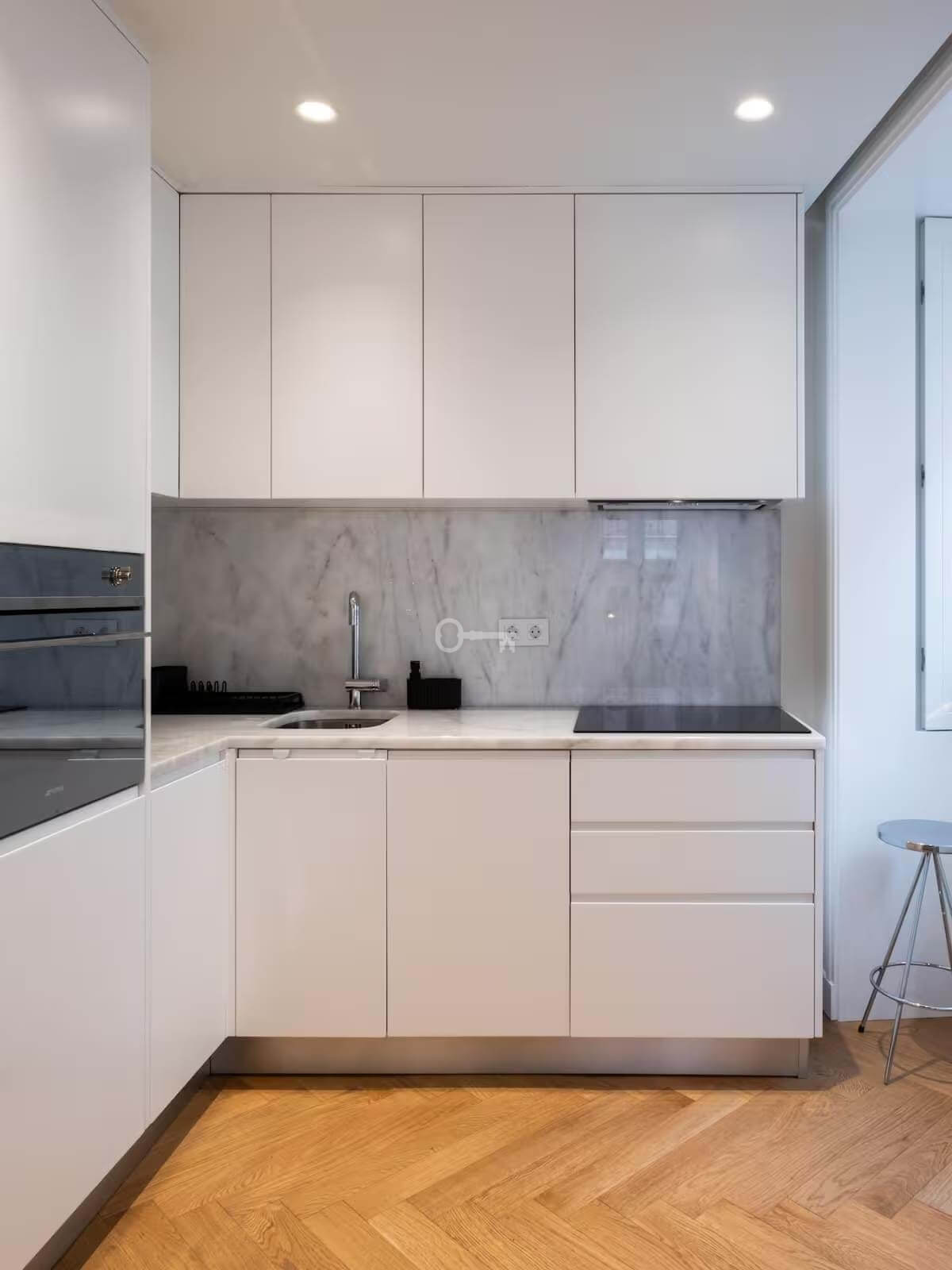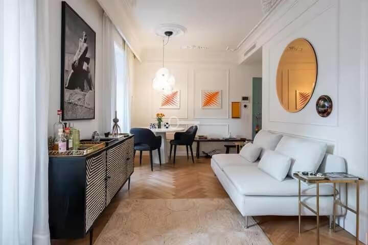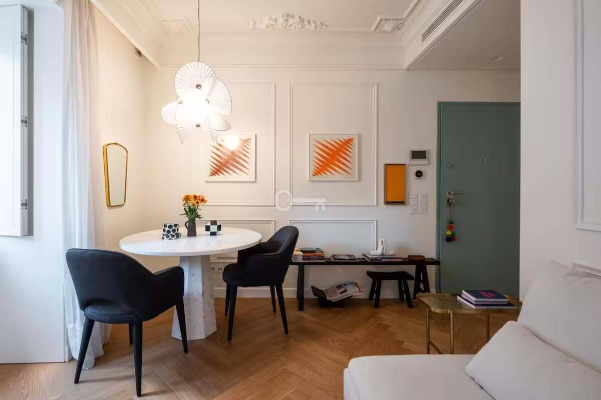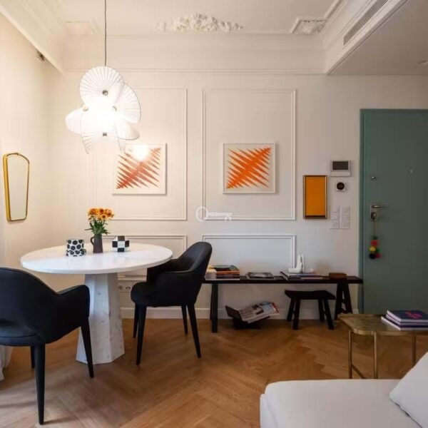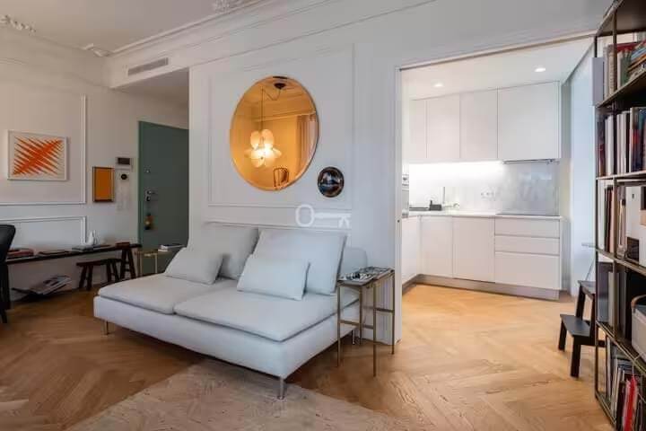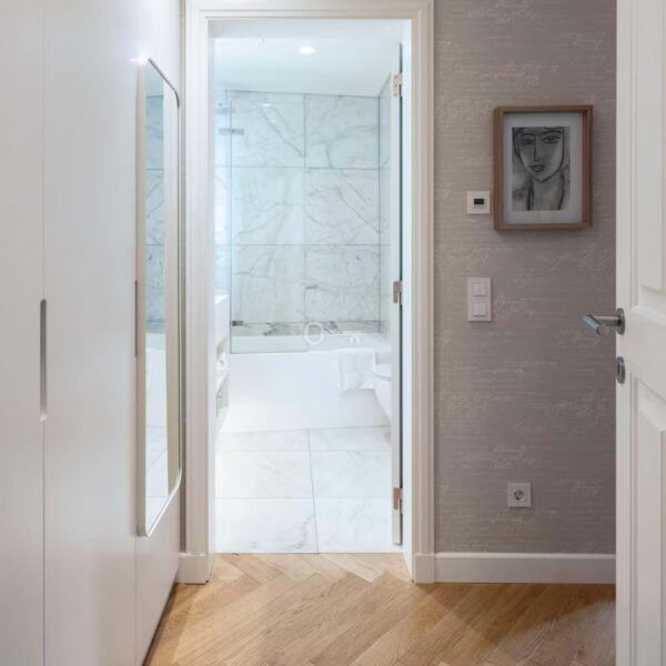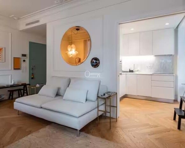 The result of a complete building renovation, the property combines contemporary design with classic elements, using high-quality materials. Thanks to its five double-glazed windows, it benefits from good natural light that is distributed throughout the apartment practically all day long.