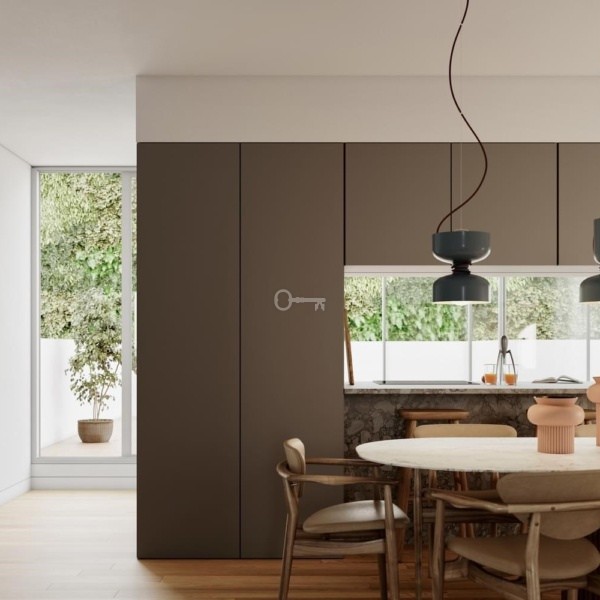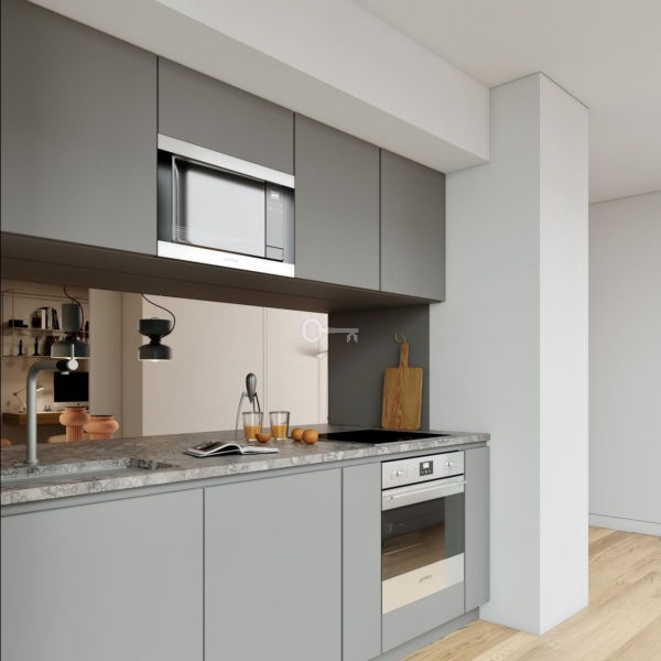Wnętrza apartamentów T1, T2, T2+1 i T3 mają wysokiej jakości wykończenia, pokrycia i materiały, które łączą się z charakterystycznym harmonijnym i funkcjonalnym projektem przestrzeni.