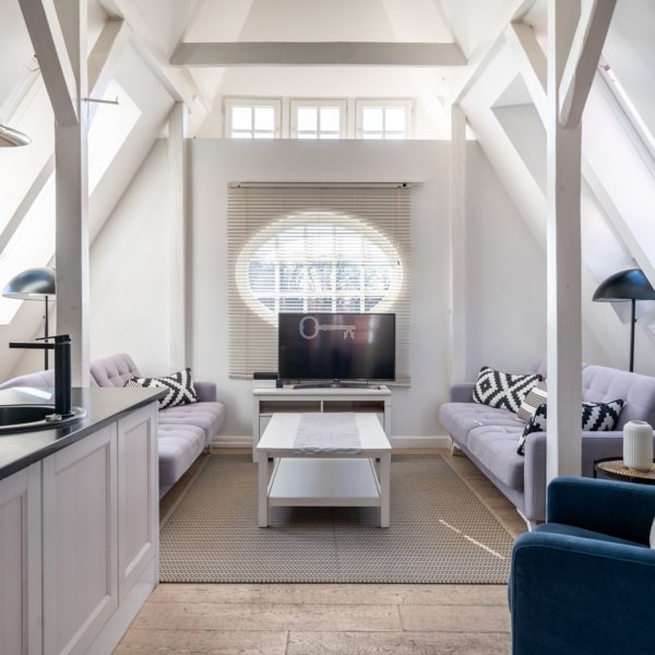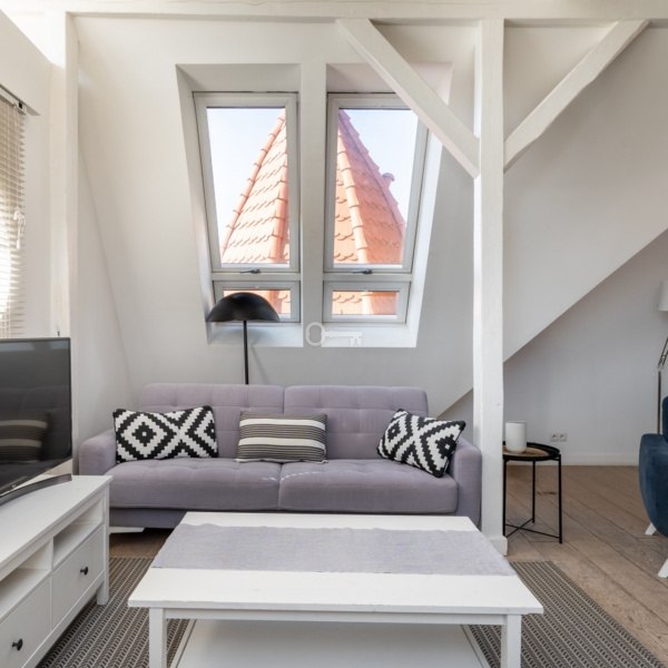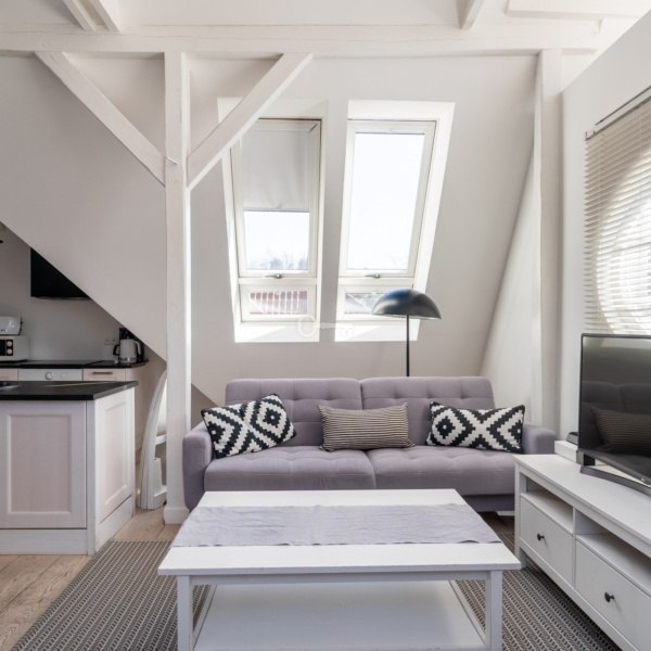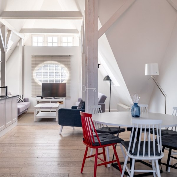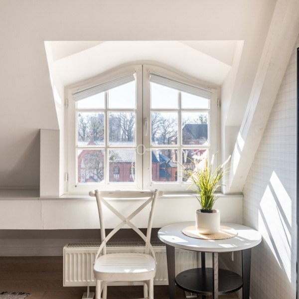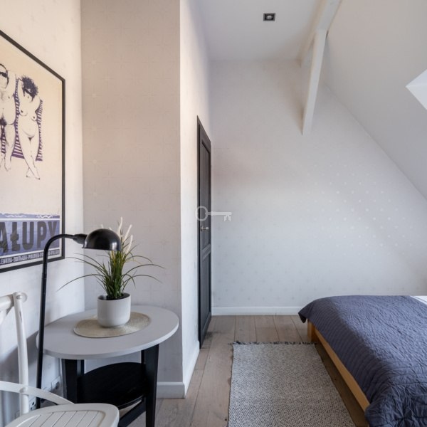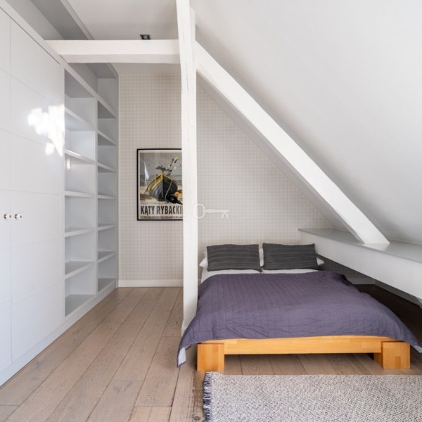 Mieszkanie znajduje się na trzecim piętrze, powstało z adaptacji bardzo wysokiego poddasza, z dużą ilością okien połaciowych. Mieszkanie ma niesamowity klimat, jest bardzo przytulne, ciche i słoneczne. W najwyższym punkcie mieszkanie ma 5 metrów wysokości.