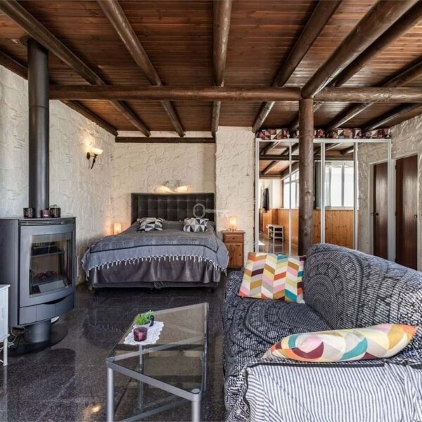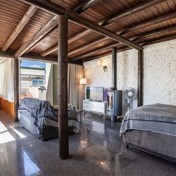 The main apartment features 2 spacious bedrooms and 2 full bathrooms, a bright living room with a wood-burning stove, and a large, functional kitchen. From the living room, you can access a pleasant terrace, perfect for relaxation. The apartment is equipped with AC for maximum comfort all year round.