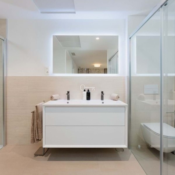 Układ: główna sypialnia z łazienką i garderobą oraz kącikiem do pracy, druga sypialnia również w pełni umeblowana z oddzielną łazienką i toaletą oraz wspaniałym widokiem na morze. Trzecia sypialnia ma, oprócz łóżka, bardzo praktyczne miejsce do pracy z biurkiem. Oczywiście są też wbudowane szafy. Pokój posiada oddzielną, w pełni umeblowaną łazienkę.