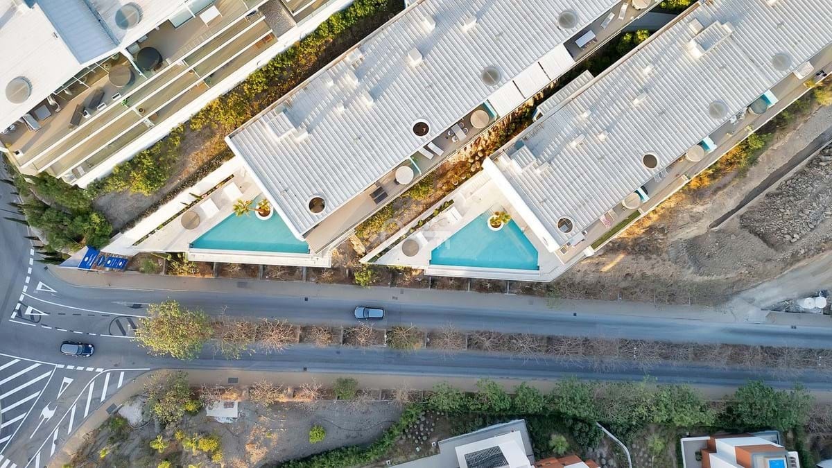 Ten spektakularny penthouse w Residential Med One na nowo definiuje luksusowe życie na wybrzeżu. Położony zaledwie 500 metrów od plaży, oferuje panoramiczne, nieprzerwane widoki na Morze Śródziemne pod każdym kątem. Jasny salon na otwartym planie jest otoczony oknami sięgającymi od podłogi do sufitu, wypełniając dom naturalnym światłem. Elegancka, otwarta kuchnia płynnie przechodzi w salon, idealny zarówno do rozrywki, jak i codziennego życia. Dzięki niedawno dodanemu systemowi odwapniania, dom ten oferuje lepszą jakość wody i dodatkowy powiew luksusu. Nieruchomość obejmuje trzy przestronne sypialnie z wbudowanymi szafami i dwie eleganckie łazienki. Główny apartament posiada prywatną łazienkę z wolnostojącą wanną, oddzielnym prysznicem i spektakularnym widokiem na Morze Śródziemne. Taras o powierzchni 44 m², zarówno zadaszony, jak i otwarty, obejmuje wannę z hydromasażem; idealne miejsce na relaks, posiłek i podziwianie zapierających dech w piersiach zachodów słońca. W cenę wliczone są dwa miejsca parkingowe i komórka lokatorska.