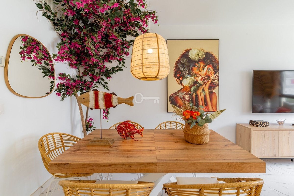 Sercem apartamentu jest duży salon i jadalnia na otwartym planie, płynnie połączone z designerską kuchnią w pełni wyposażoną w najnowocześniejsze urządzenia. Z tego miejsca można wyjść na prywatny taras z przepięknym widokiem na morze, idealne miejsce na słoneczne śniadania lub niezapomniane kolacje z widokiem na Morze Śródziemne.