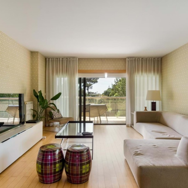 Fantastyczny apartament z 2 sypialniami, o prywatnej powierzchni brutto 155 m2 (122 m2 powierzchni użytkowej + 33 m2 tarasów), położony w zamkniętym kondominium w Gandarinha, blisko morza i zaledwie kilka minut od centrum Cascais i jego przystani.