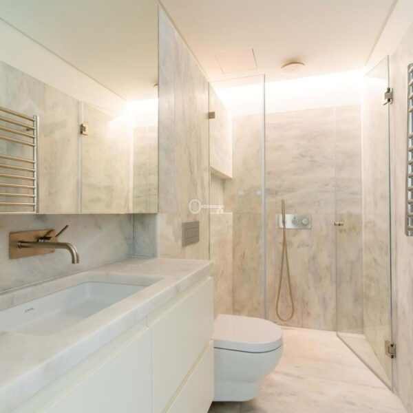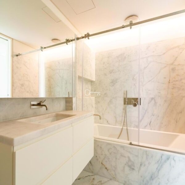The property combines contemporary design with classic elements, using high-quality materials from the common areas in natural white Ibiza marble, to the interior of the residences, which also feature marble details in bathrooms and kitchens.