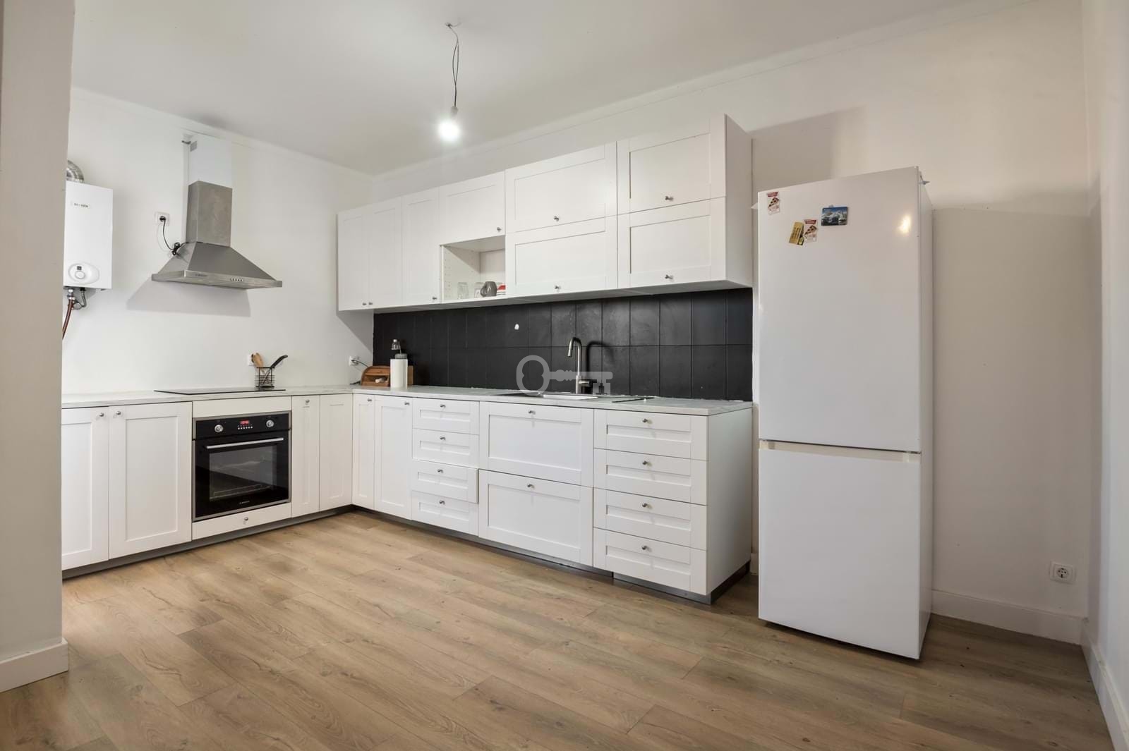 Pierwsze piętro: W pełni wyposażona kuchnia na otwartym planie zintegrowana z salonem, jedna sypialnia, pełna łazienka i zamknięty balkon, idealny do przechowywania.