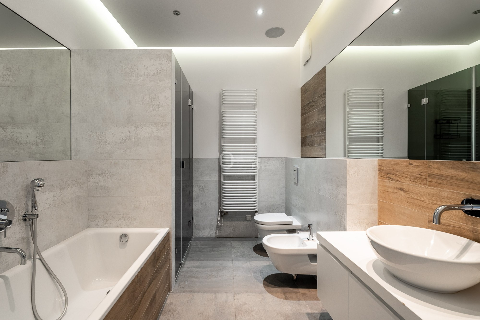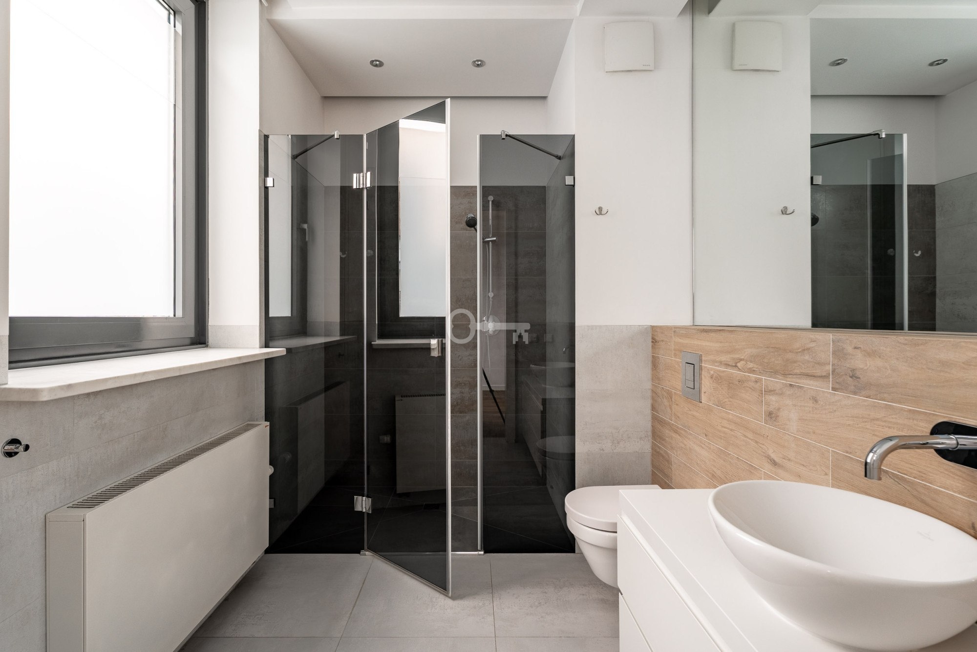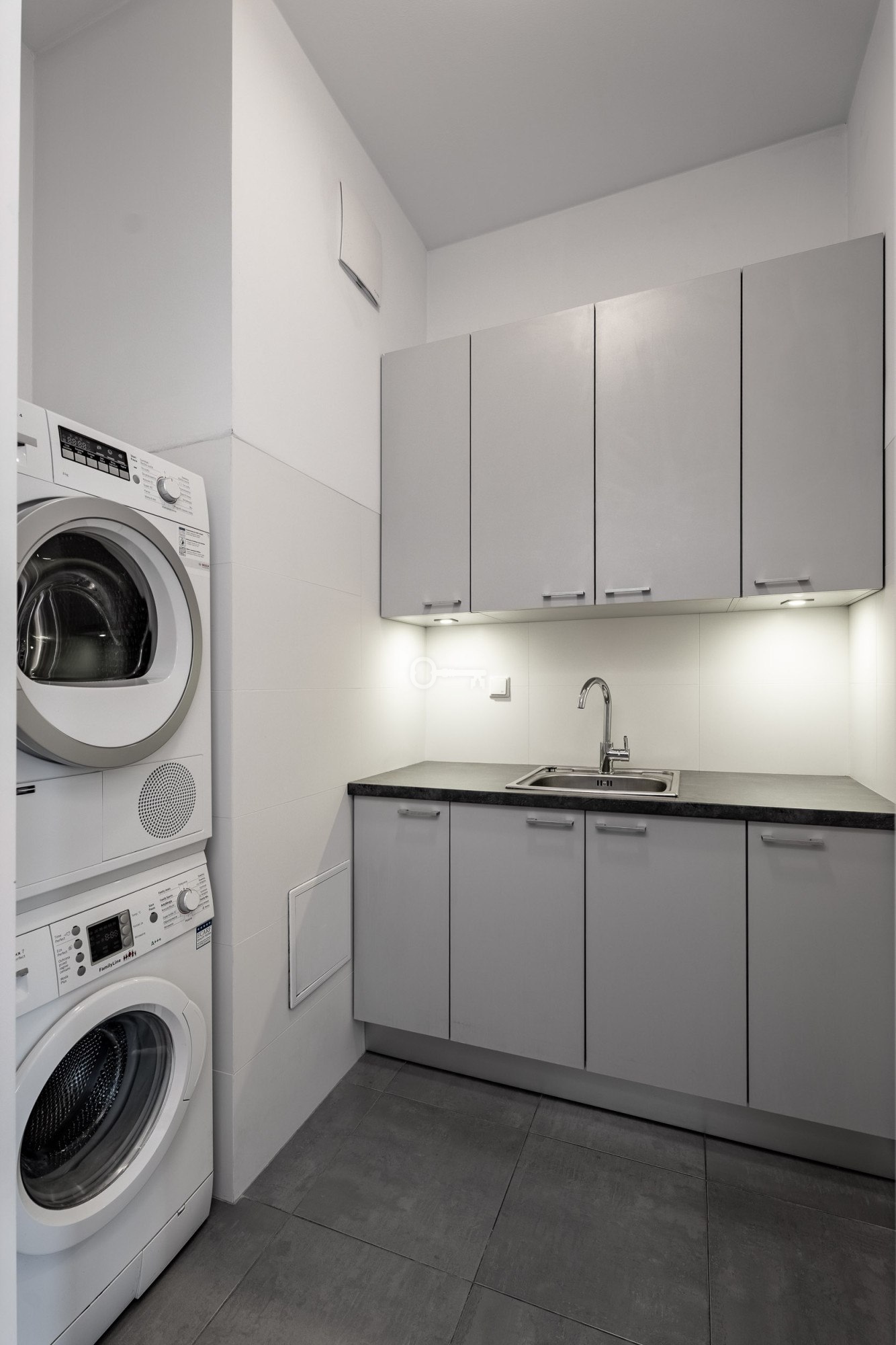 Mieszkanie wykończone jest w wysokim standardzie, a wszystkie urzadzenia są sprzętami z najwyższej półki. Co zwraca uwagę, to duża liczba łazienek, która gwarantuje komfort życia dużej rodzinie, podobnie jak osobne pomieszczenia gospodarcze, czy dwie pełnowymiarowe lodówki. Dodatkowym potencjalnym udogodnieniem jest też dodatkowe wejście do mieszkania.