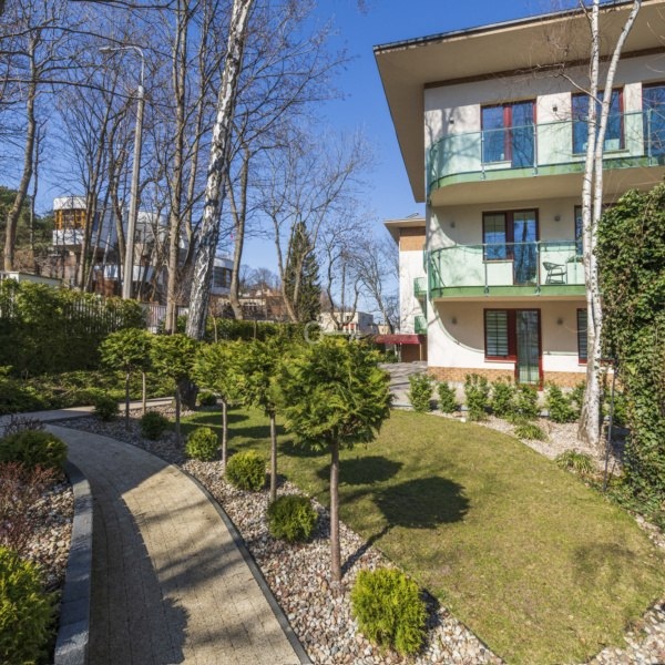 Apartament znajduje się w ekskluzywnej, trzykondygnacyjnej willi, która położona jest zaledwie 100 metrów od plaży, w najbardziej reprezentacyjnej części Gdyni. Jest to niepowtarzalne miejsce na mapie Trójmiasta. Świetnie wkomponowuje się w nadmorski klimat. Imponuje architekturą, jakością wykończenia, elegancją. Apartamenty są w większości zamieszkałe na stałe bądź jako second home, co wpływa na komfort mieszkańców. Willa otoczona jest zadbaną zielenią, posesja jest ogrodzona i monitorowana. Budynek posiada bogato zdobione klatki schodowe, został wyposażony w windę, która prowadzi do podziemnej hali garażowej.