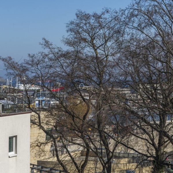 Apartament o powierzchni 148m2 jest bardzo przestronny i jasny. Szczególny charakter nadaje mu widok na morze z części dziennej. Szeroki hall prowadzi do dużego salonu z aneksem kuchennym wyposażonym w sprzęt AGD. Z balkonu widać plażę i gdyńską marinę.