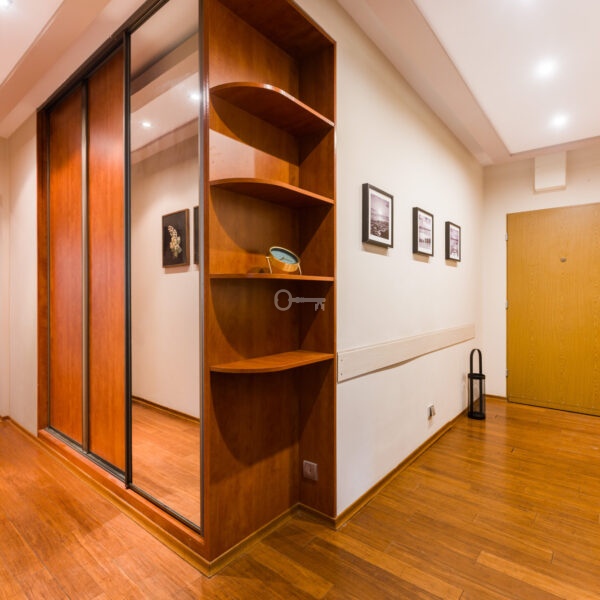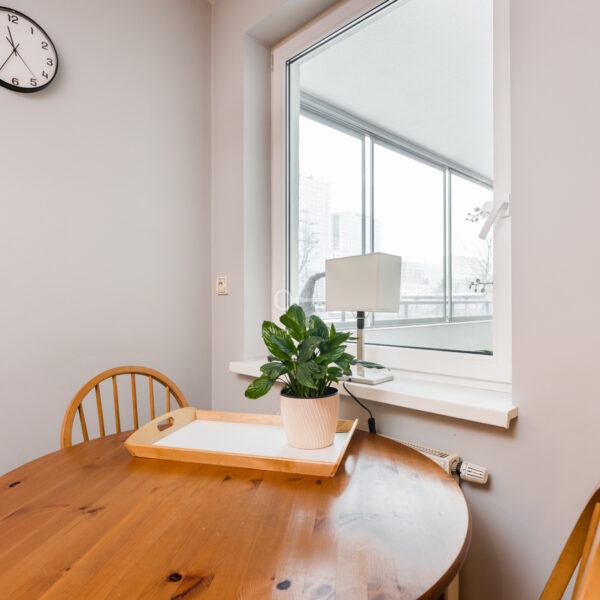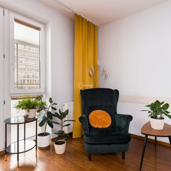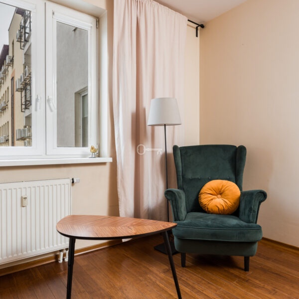 Mieszkanie zostało zaprojektowane w sposób wyjątkowo przemyślany – wyraźnie wydzielono strefę dzienną oraz prywatną, co zapewnia wygodę zarówno w codziennym funkcjonowaniu, jak i podczas pracy zdalnej. Lokal jest wyjątkowo cichy, mimo bliskości centrum miasta, co czyni go idealnym wyborem dla osób ceniących spokój.