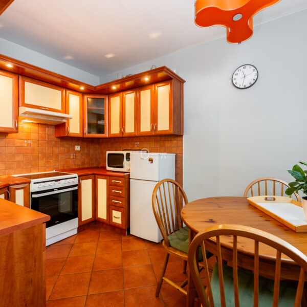 * kuchnia stanowi osobne pomieszczenie i jest w pełni wyposażona w niezbędny sprzęt AGD, w tym lodówkę z zamrażarką, piekarnik, płytę grzewczą oraz zmywarkę,