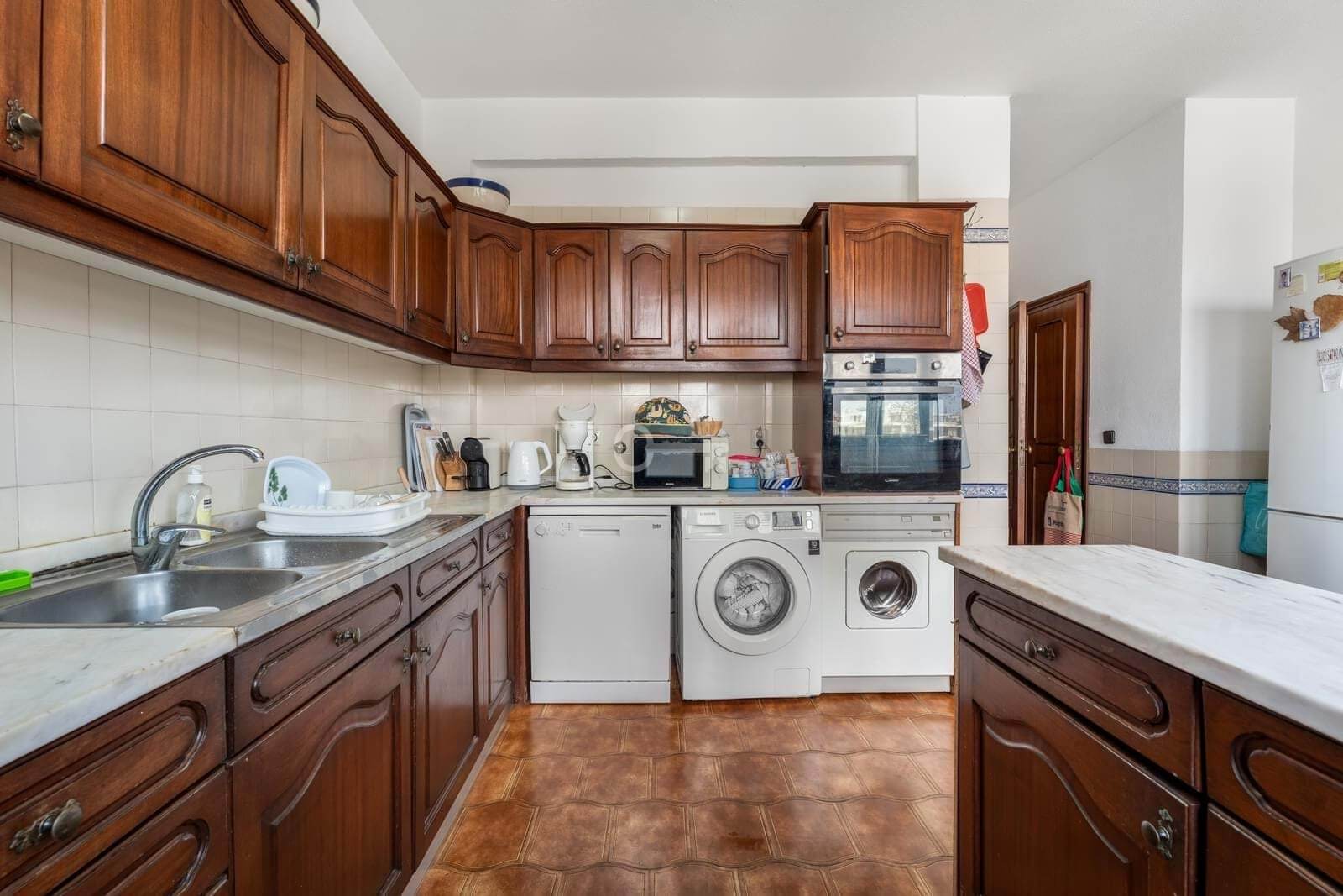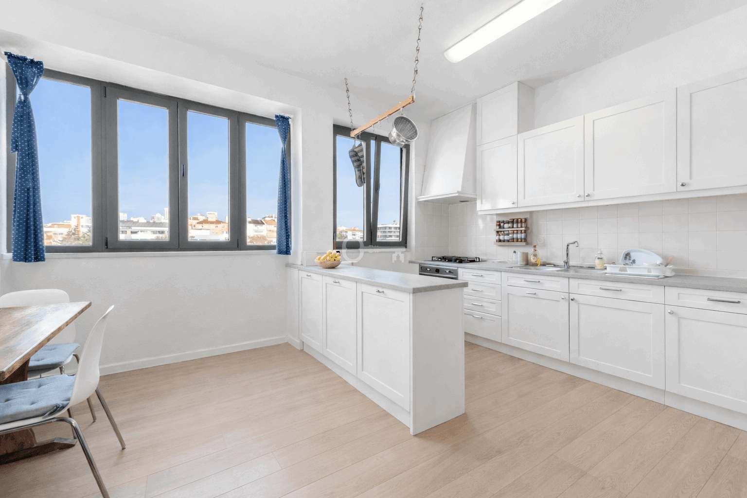 W pełni wyposażona kuchnia wyposażona jest w wysokiej klasy urządzenia i dużo miejsca do przechowywania, idealne do nowoczesnego życia.