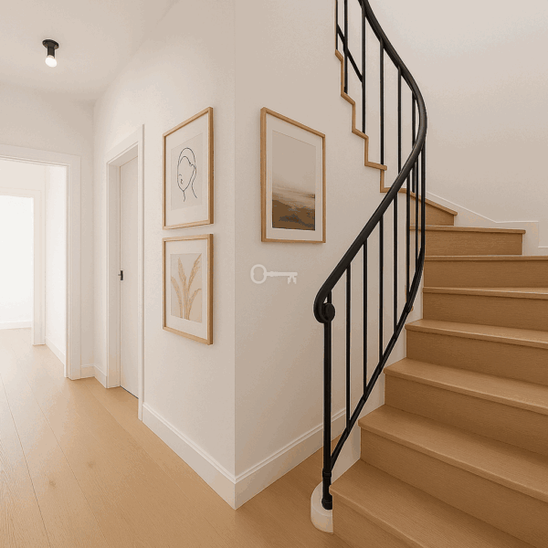 Na tym poziomie znajduje się również stylowa łazienka dla gości z prysznicem i wszechstronna sypialnia z wbudowaną szafą, idealna dla gości lub domowego biura.