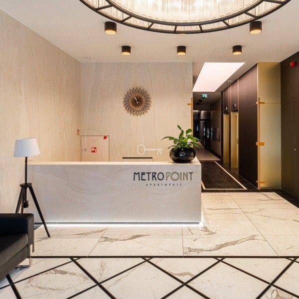 Balkon z zielonym tarasem | Wysoki standard wykończenia | Miejsce postojowe w garażu podziemnym na platformie | Komfortowe wnętrze | Nowoczesny budynek – Metropoint | Dostępne od marca